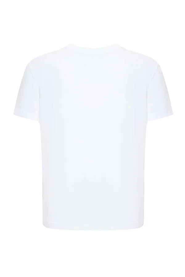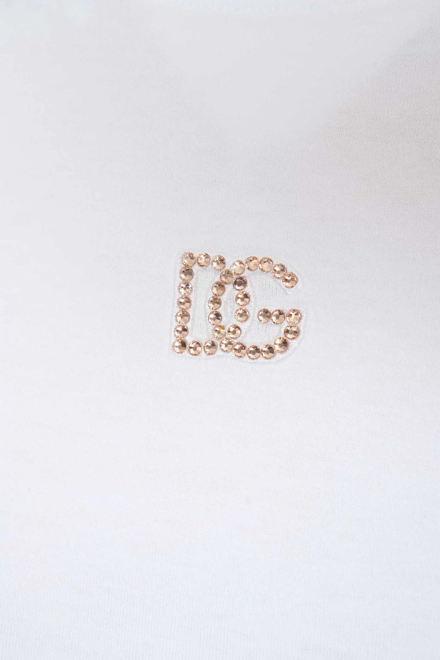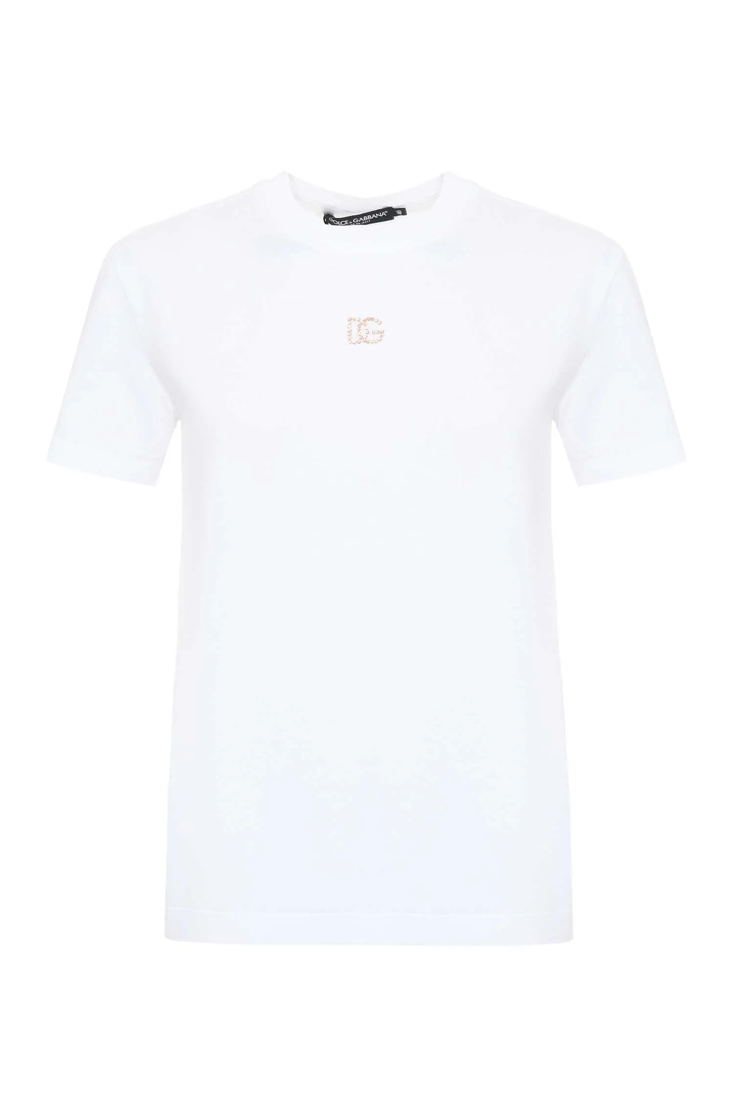 DOLCE&GABBANA ФУТБОЛКА M.428 БЕЛАЯ, НА ГРУДИ МАЛЕНЬКОЕ ВЫШИТОЕ ЛОГО DG С РОЗОВЫМИ СТРАЗАМИ