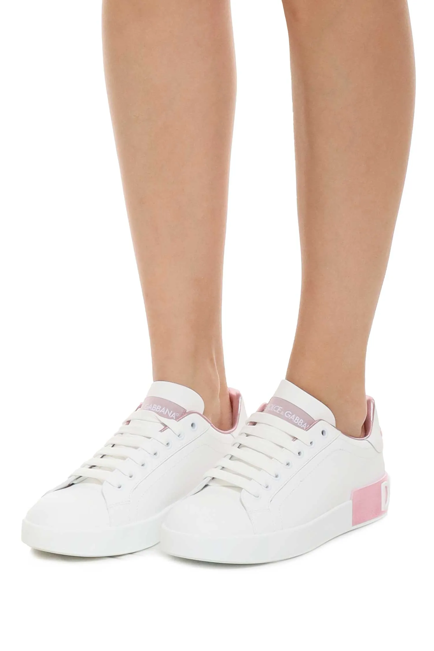 КЕДЫ PORTOFINO БЕЛЫЕ, МАТОВАЯ КОЖА, ПЯТКА РОЗОВЫЙ МЕТАЛЛИК, ЛОГО НА ПОДОШВЕ, К=3