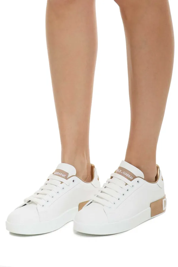 КЕДЫ PORTOFINO БЕЛЫЕ, МАТОВАЯ КОЖА, ЗОЛОТИСТАЯ ПЯТКА, ЛОГО НА ПОДОШВЕ, К=3