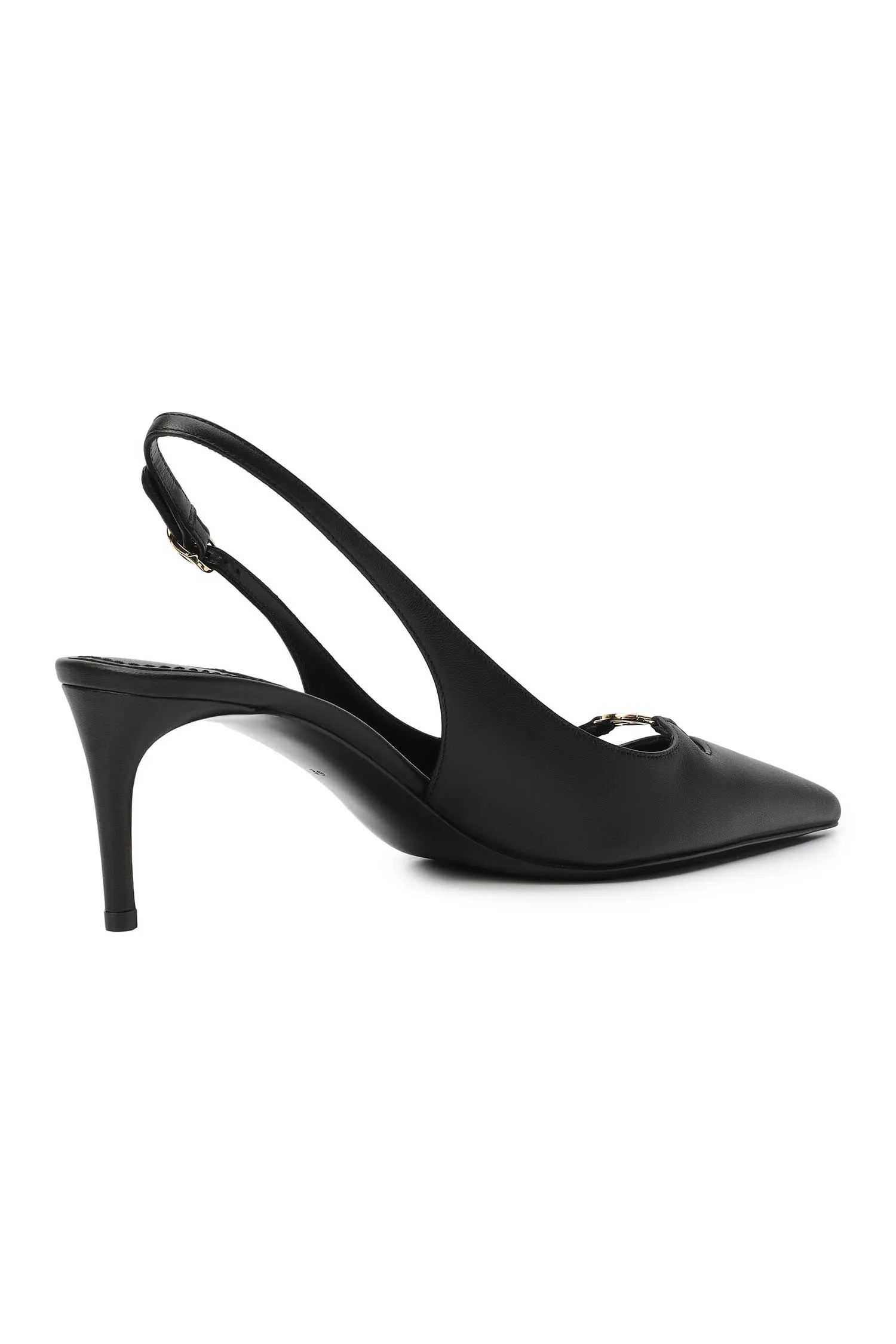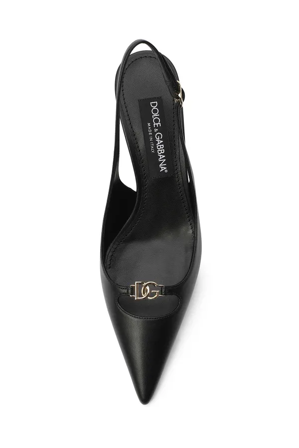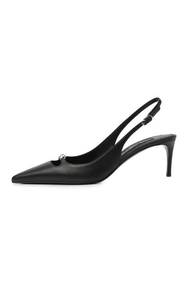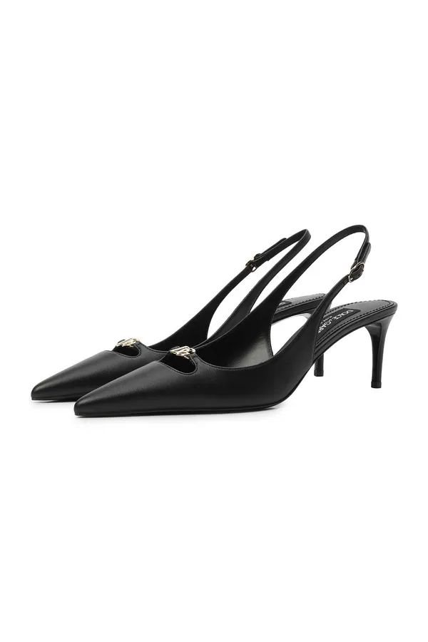 DOLCE&GABBANA ТУФЛИ LOLLO 60 ЧЁРНЫЕ, КОЖАНЫЕ, ОСТРЫЙ НОС, ОТКРЫТАЯ ПЯТКА, ВЫРЕЗ С ЗОЛОТИСТЫМ ЛОГО DG, К=6,5