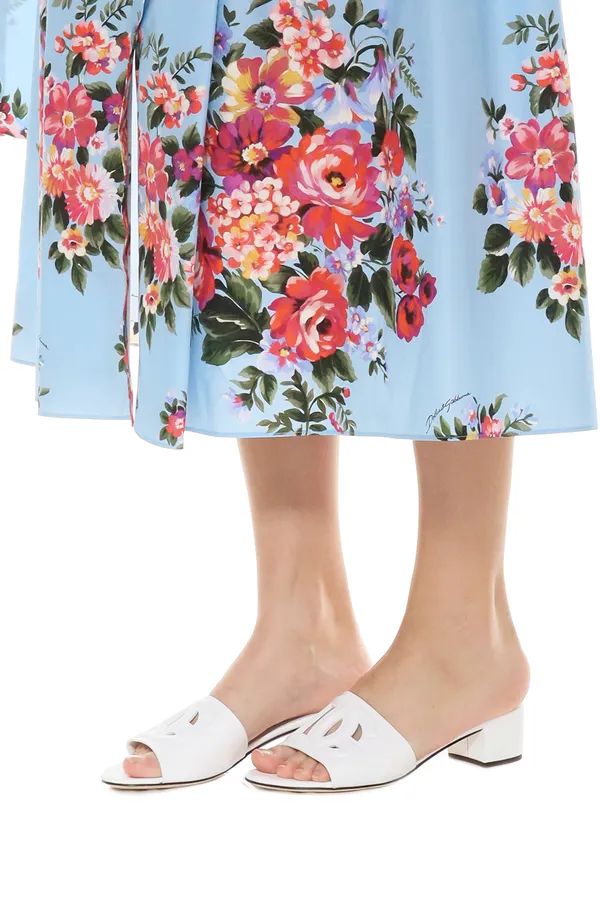 МЮЛИ BIANCA 40 БЕЛЫЕ, МАТОВАЯ КОЖА, ПЕРФОРИРОВАННОЕ ЛОГО DG, ШИРОКИЙ КАБЛУК, К=4,3