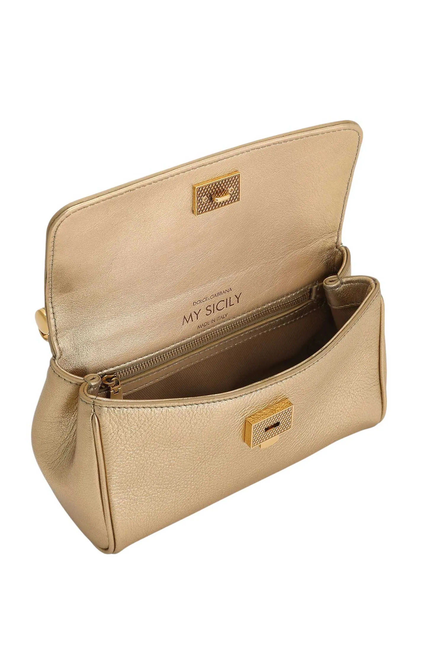 СУМКА MY SICILY ЗОЛОТИСТАЯ КОЖА, МАЛЕНЬКАЯ, С КЛАПАНОМ, ЗАСТЁЖКА-ФАСТЕКС, БРЕЛОК ДЛЯ ВИЗИТКИ, РУЧКА, РЕМЕШОК