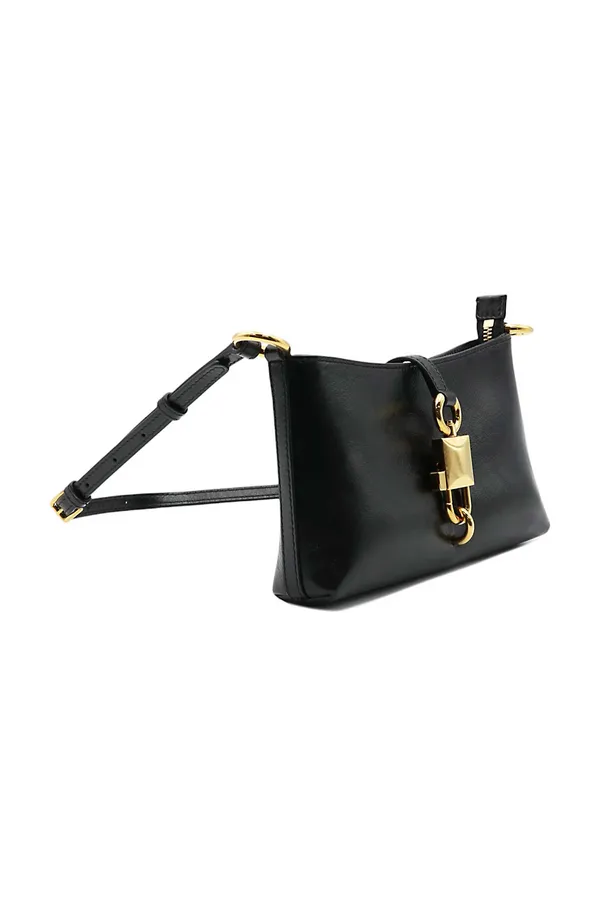 СУМКА LOCK ЧЁРНАЯ, БЛЕСТЯЩАЯ КОЖА, МАЛЕНЬКАЯ, ПЕРЕКИДНАЯ ЗОЛОТИСТАЯ ЗАСТЕЖКА-ЗАМОК, РЕМЕШОК