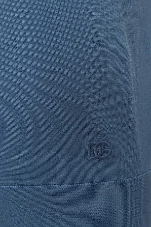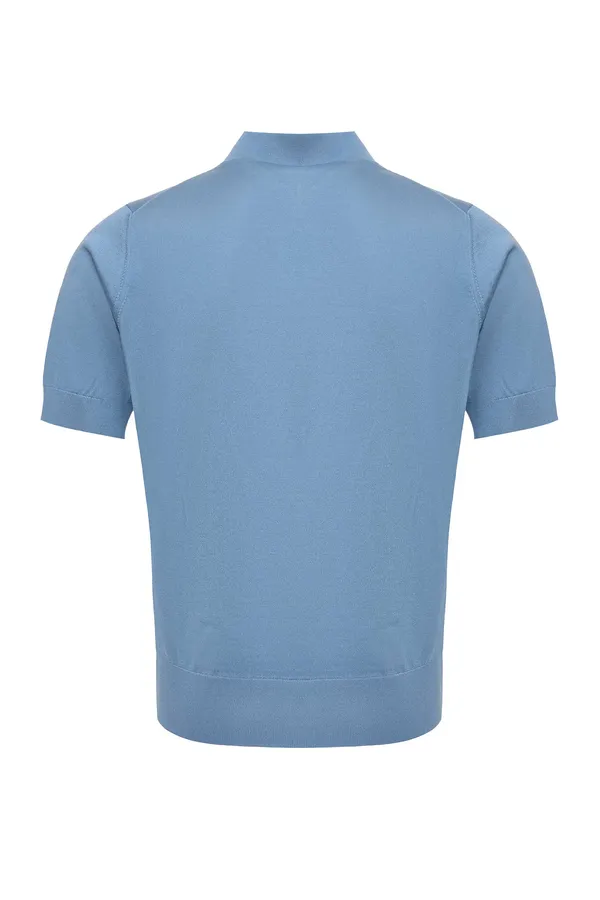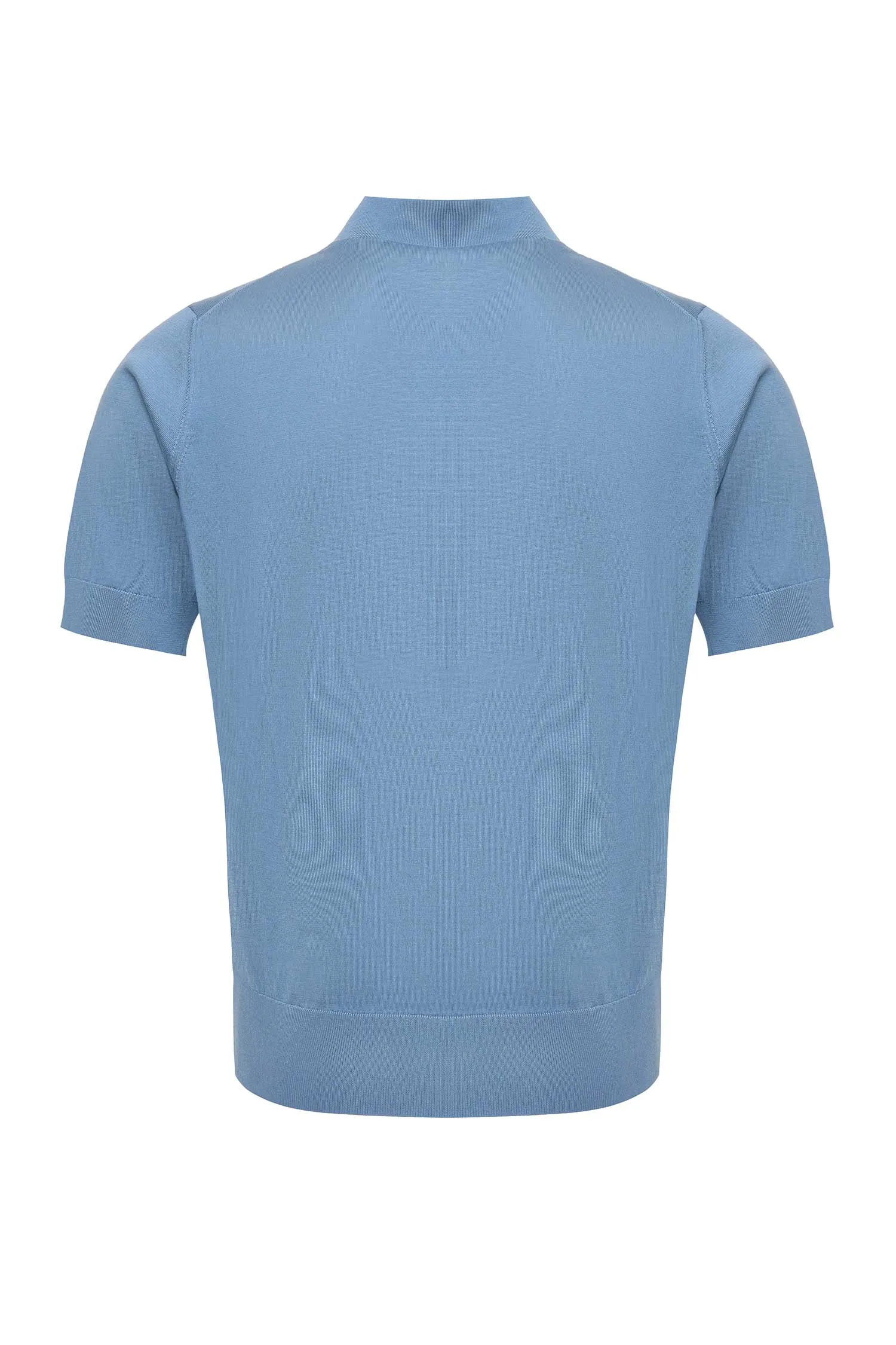 DOLCE&GABBANA ДЖЕМПЕР-ПОЛО M.002 ГОЛУБОЙ ИЗ ШЁЛКА, СНИЗУ ВЫШИТОЕ ЛОГО DG В ТОН, К/РУК.