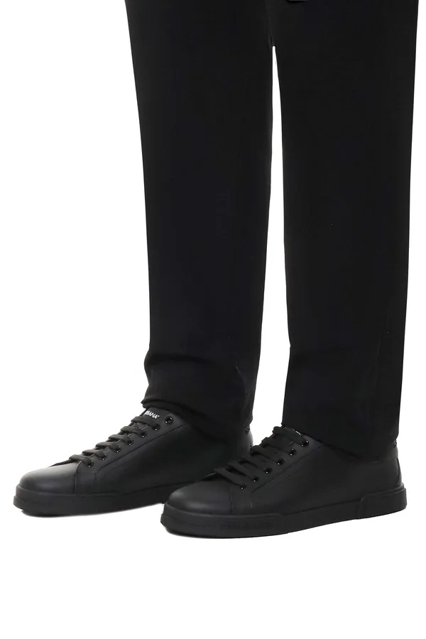 DOLCE&GABBANA КЕДЫ STROBEL PORTOFINO LIGHT ЧЁРНЫЕ, МАТОВАЯ КОЖА, ЛОГО-НАДПИСЬ НА ПОДОШВЕ В ТОН, К=3