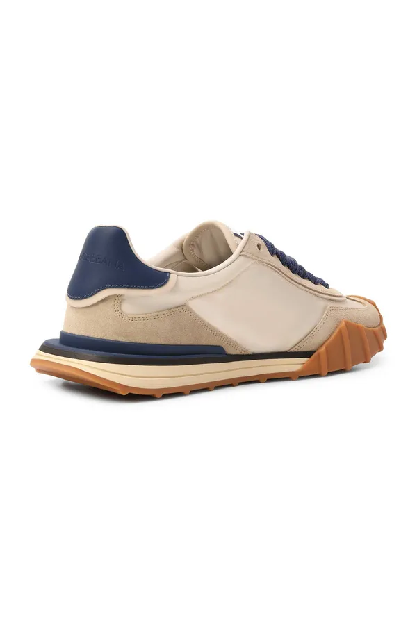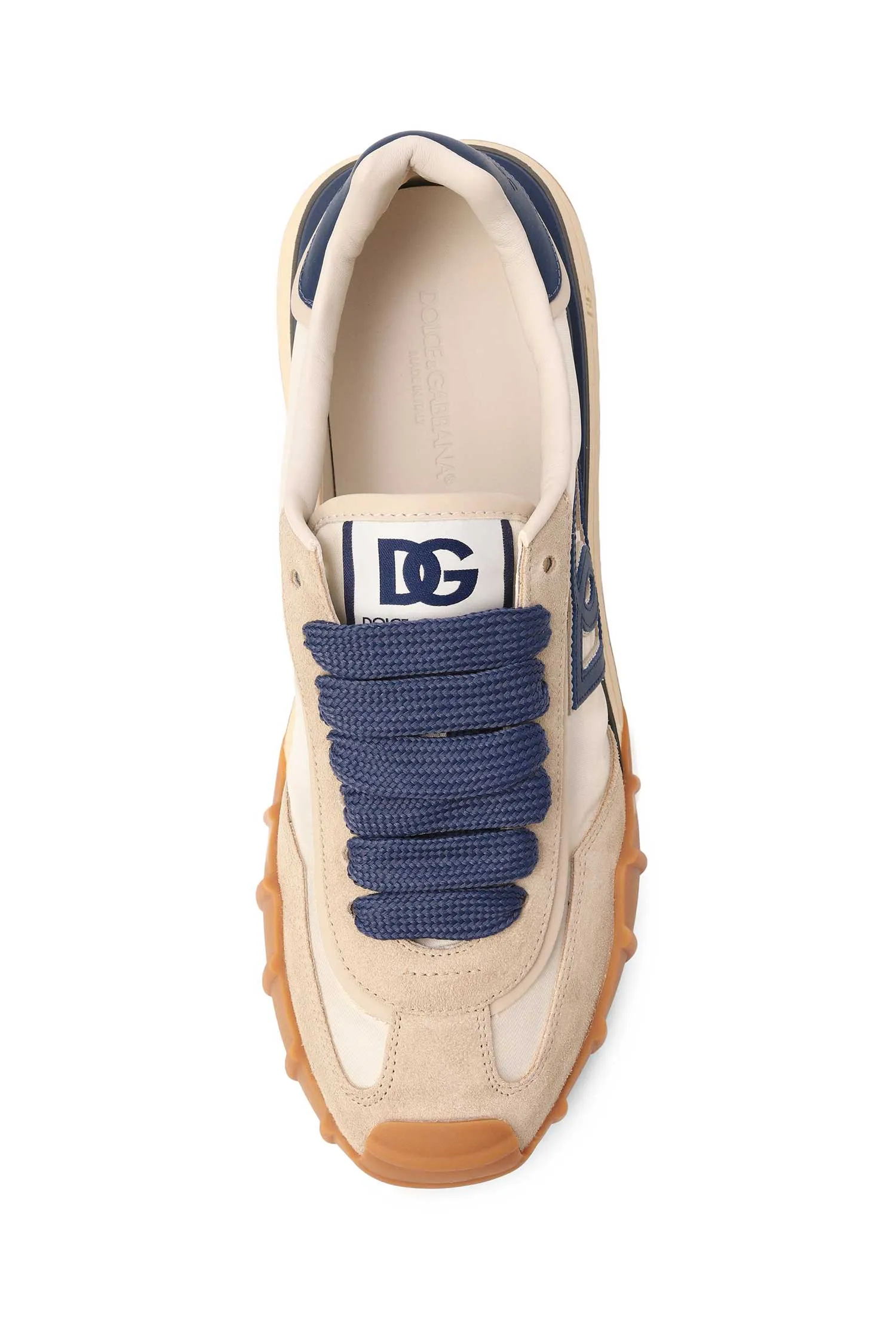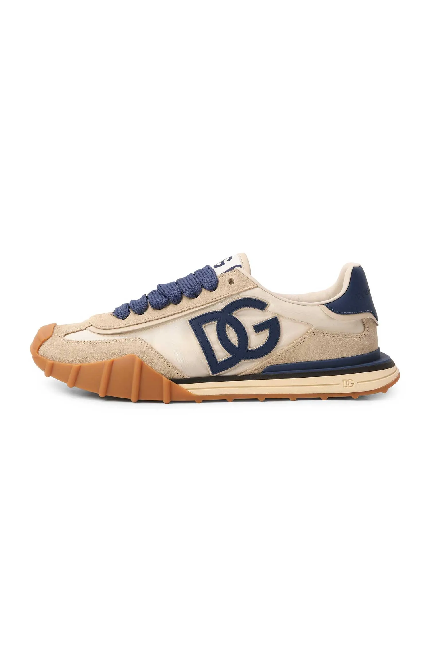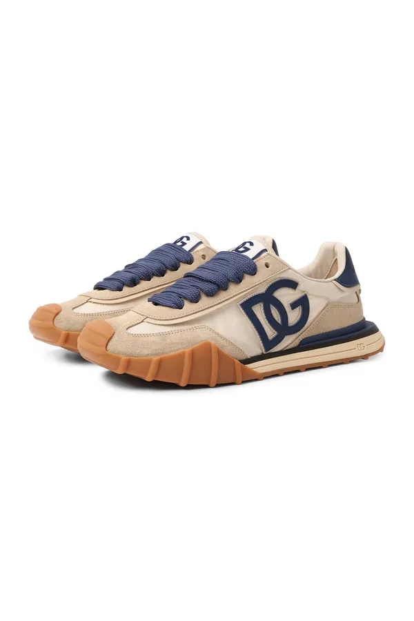 DOLCE&GABBANA КРОССОВКИ DG ATHLETIC СВ/БЕЖЕВЫЕ, КОМБИНИР., НЕЙЛОН+ЗАМША, СБОКУ Т/СИНЕЕ ЛОГО DG И ШНУРКИ, ПРОРЕЗИНЕН.НОС, К=3,5