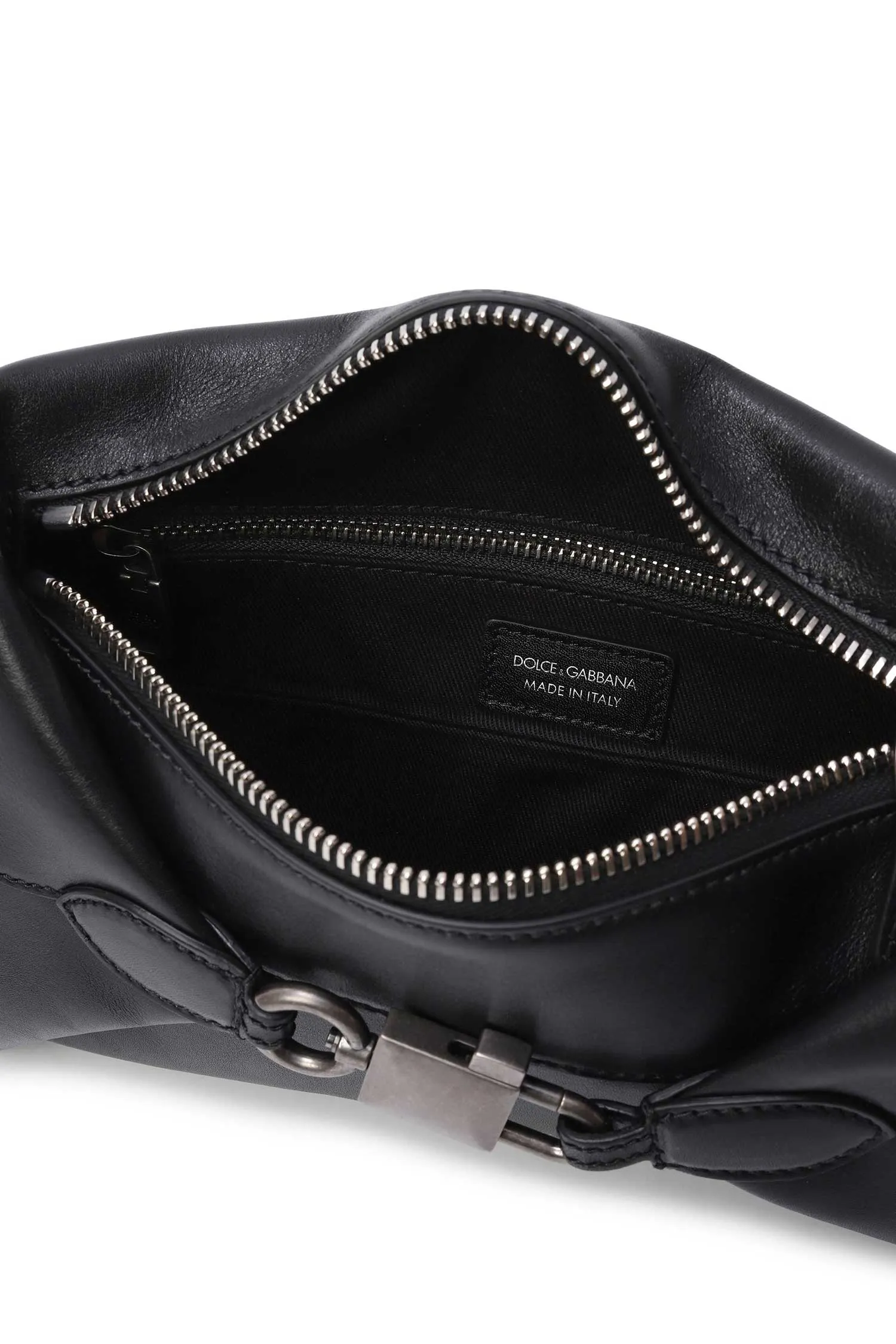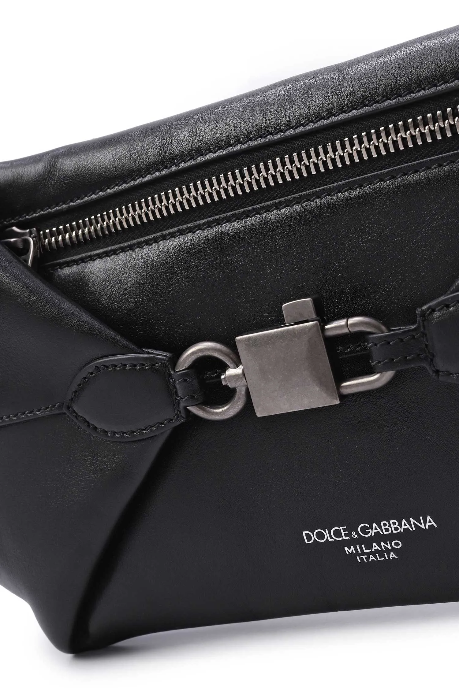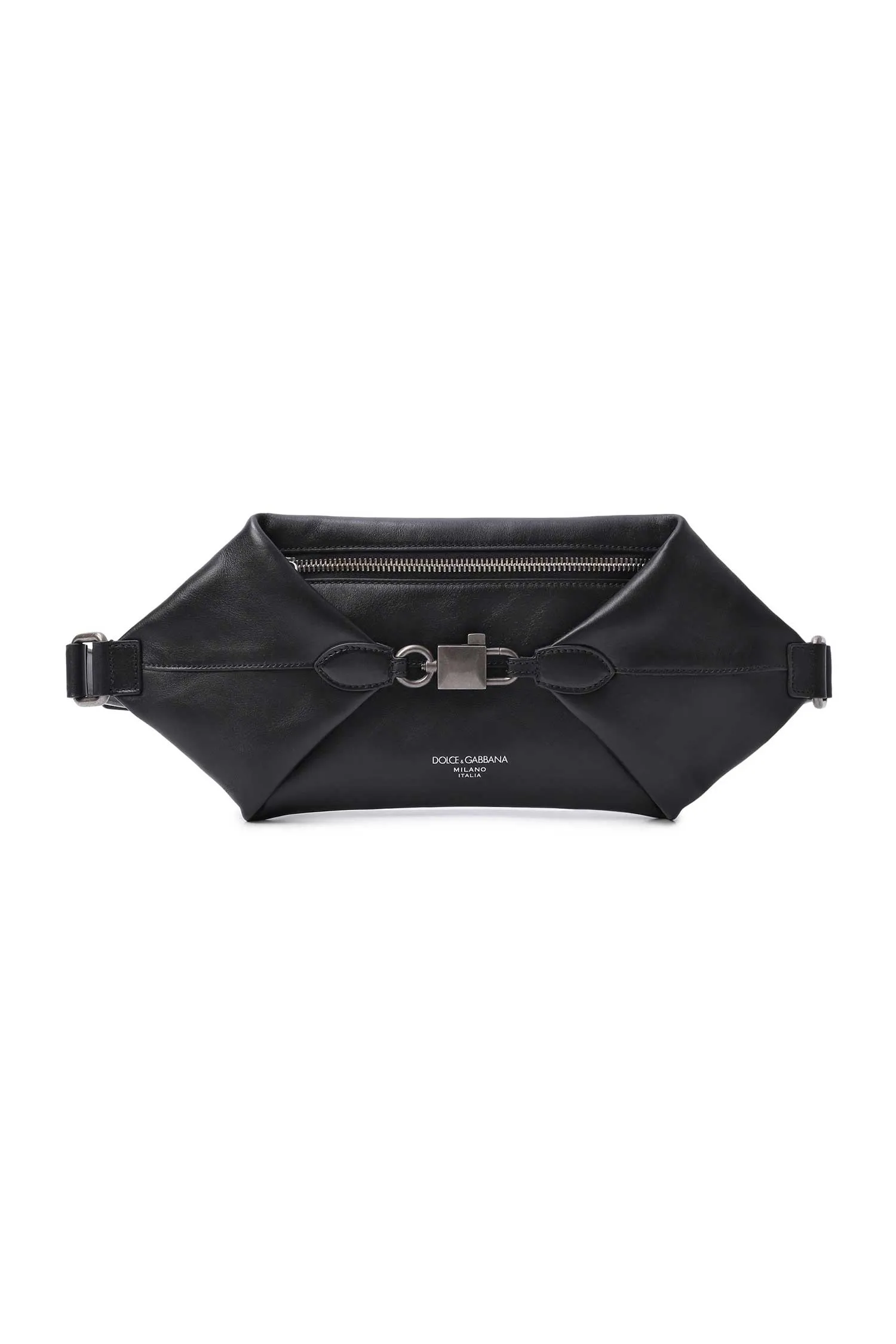 СУМКА LOCK ЧЁРНАЯ, ГЛЯНЦЕВАЯ КОЖА, ПОЯСНАЯ, КАРМАНЫ НА МОЛНИИ, Т/СЕРЕБРИСТАЯ ЗАСТЁЖКА-ЗАМОК