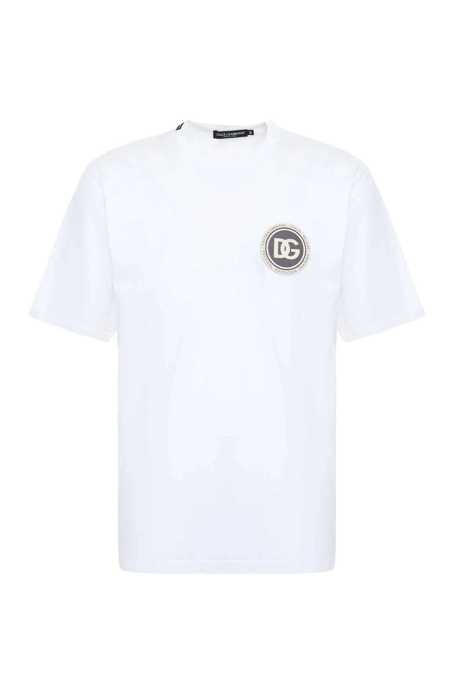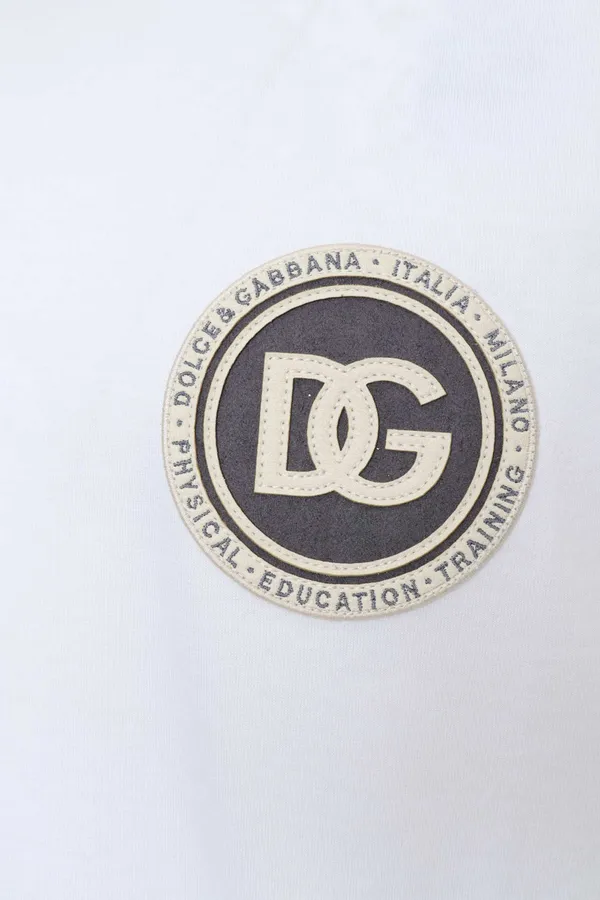 ФУТБОЛКА M.089 БЕЛАЯ, НА ГРУДИ КРУГЛАЯ МОЛОЧНО-СЕРАЯ НАШИВКА-ЛОГО DG