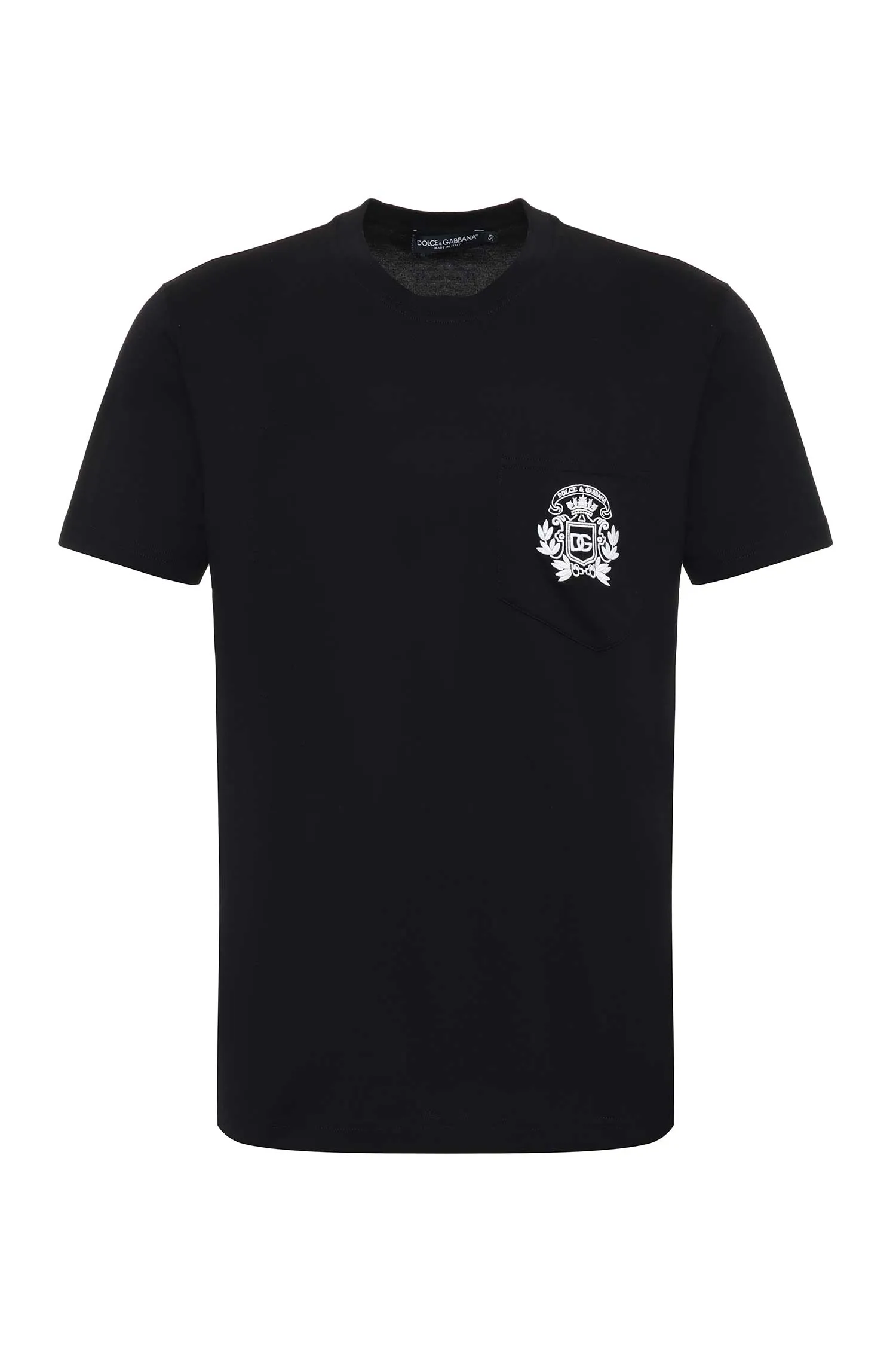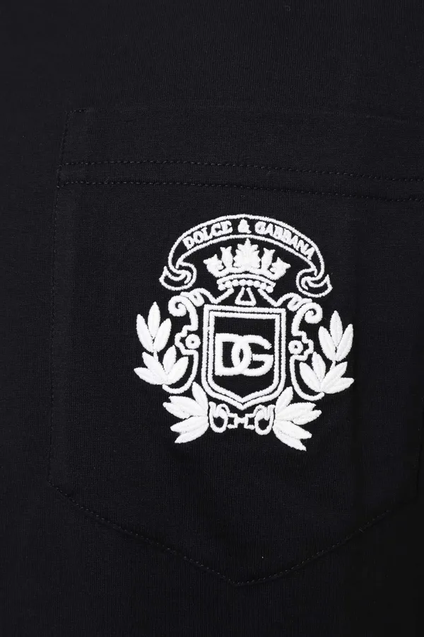 DOLCE&GABBANA ФУТБОЛКА ЧЁРНАЯ, НА КАРМАНЕ ВЫШИТОЕ БЕЛОЕ ЛОГО-ГЕРБ