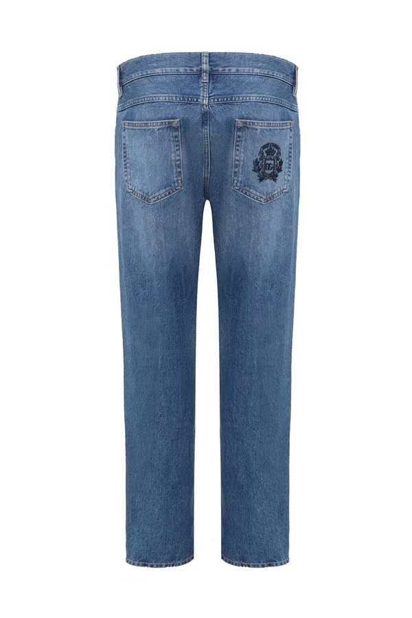 ДЖИНСЫ REGULAR СИНИЕ, НА КАРМАНЕ ВЫШИТОЕ Т/СИНЕЕ ЛОГО-ГЕРБ, Ш=18