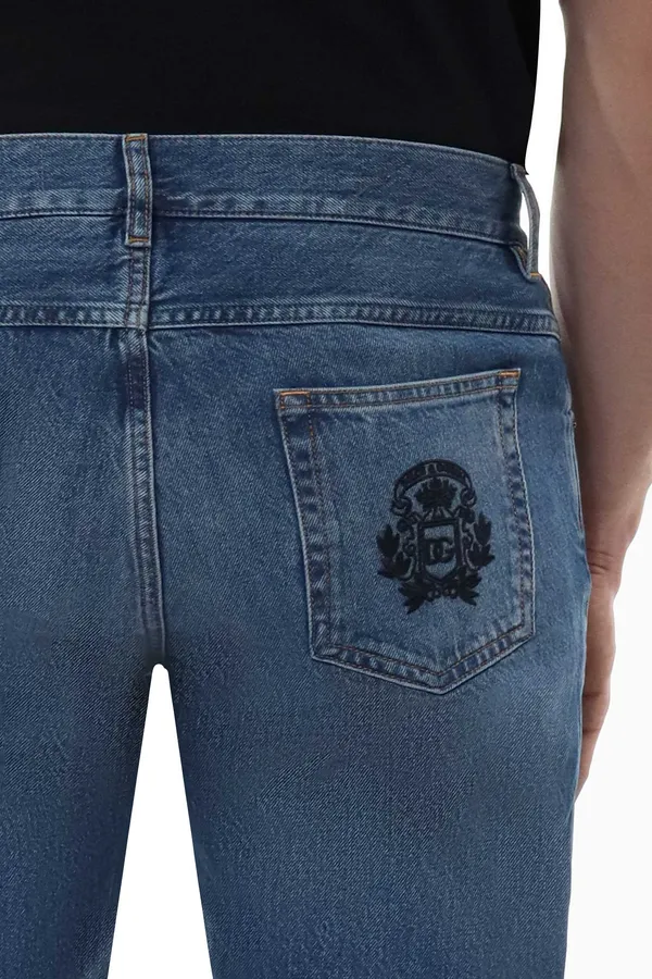 DOLCE&GABBANA ДЖИНСЫ REGULAR СИНИЕ, НА КАРМАНЕ ВЫШИТОЕ Т/СИНЕЕ ЛОГО-ГЕРБ, Ш=18