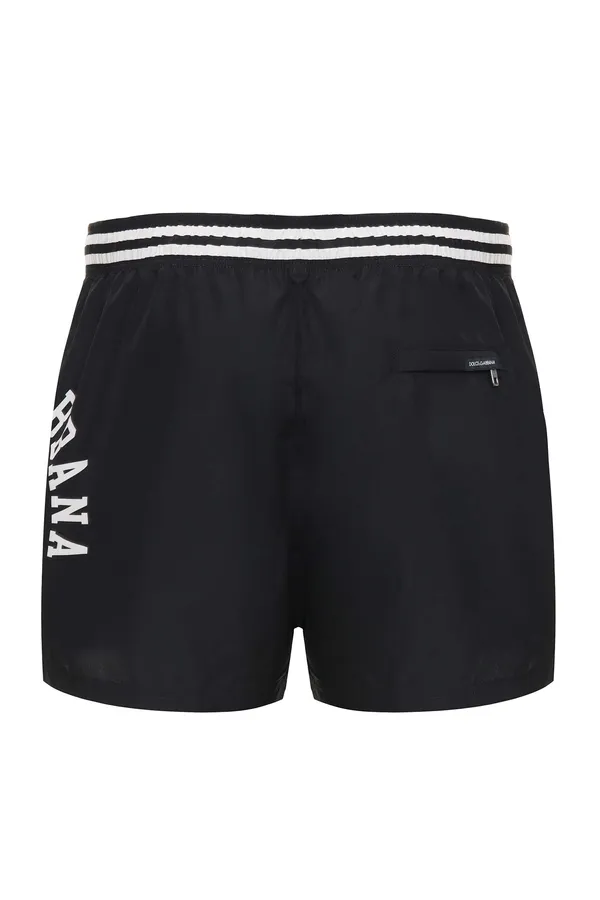 ШОРТЫ ЧЁРНЫЕ ПЛАВАТЕЛЬНЫЕ, НА КУЛИСКЕ, СБОКУ БЕЛАЯ ЛОГО-НАДПИСЬ И ГЕРБ, СЗАДИ КАРМАН НА МОЛНИИ, СУМОЧКА