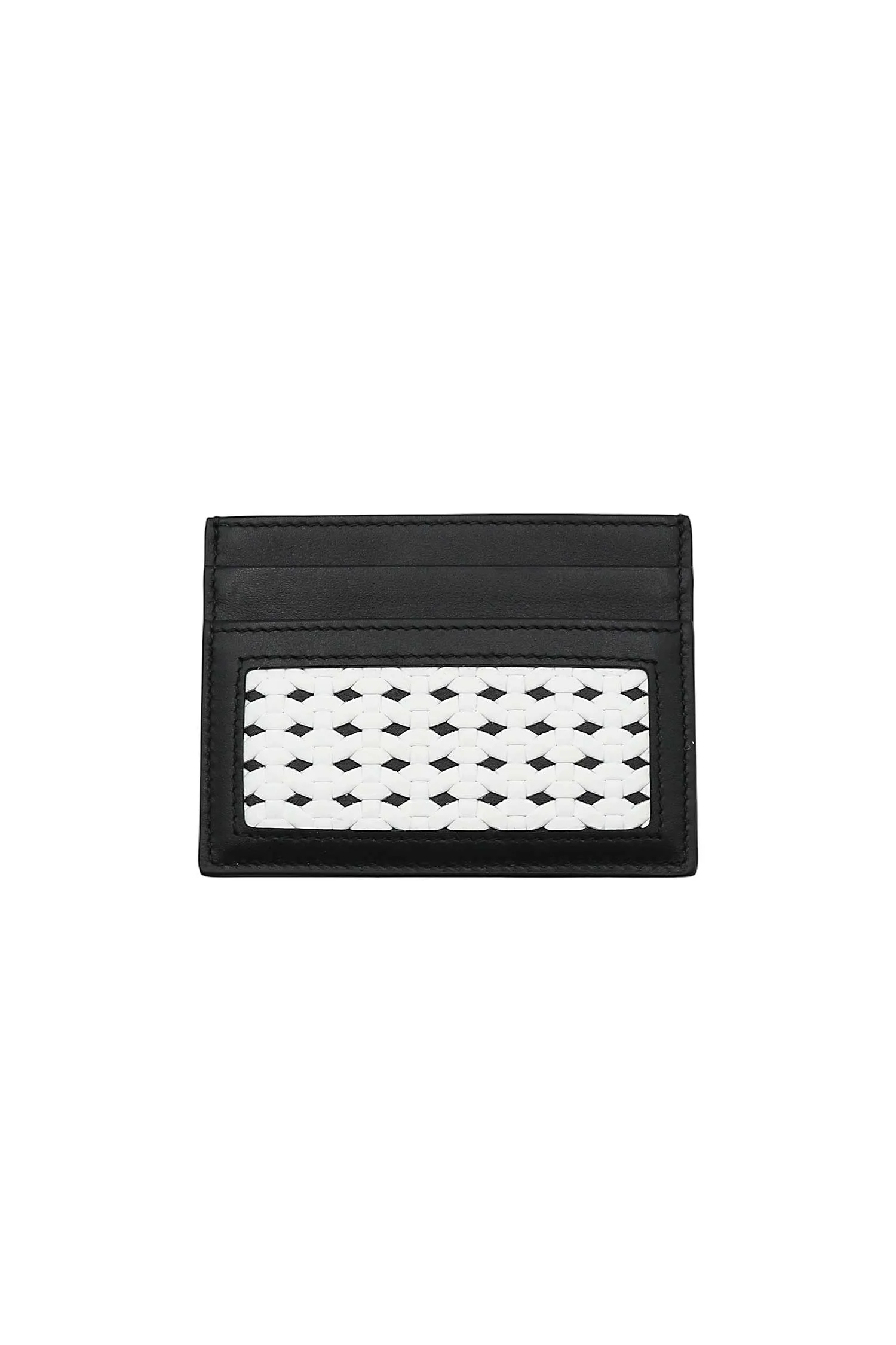 ВИЗИТНИЦА ЧЁРНАЯ С БЕЛОЙ ПЛЕТЁНОЙ ОТДЕЛКОЙ, КОЖАНАЯ, СЕРЕБРИСТАЯ ЛОГО-НАДПИСЬ
