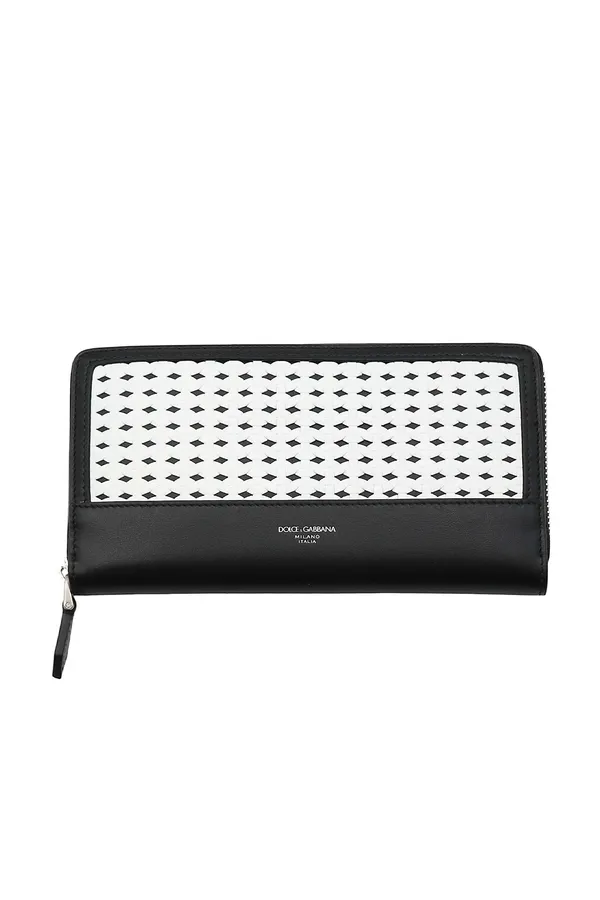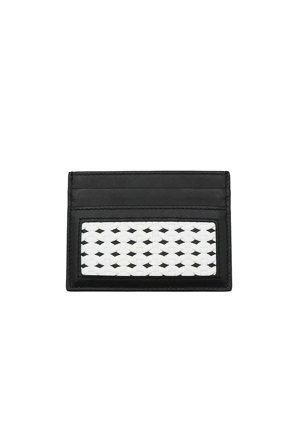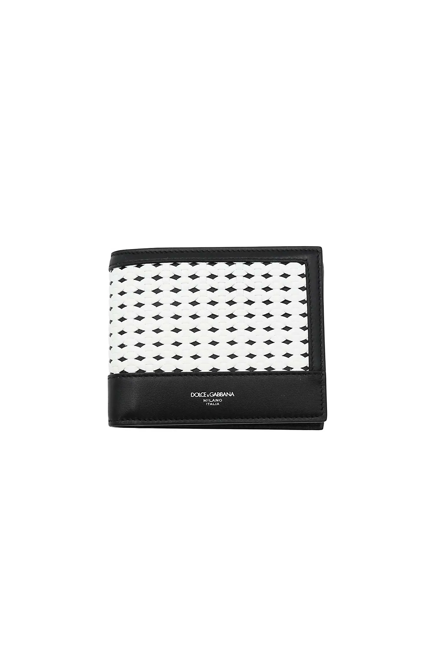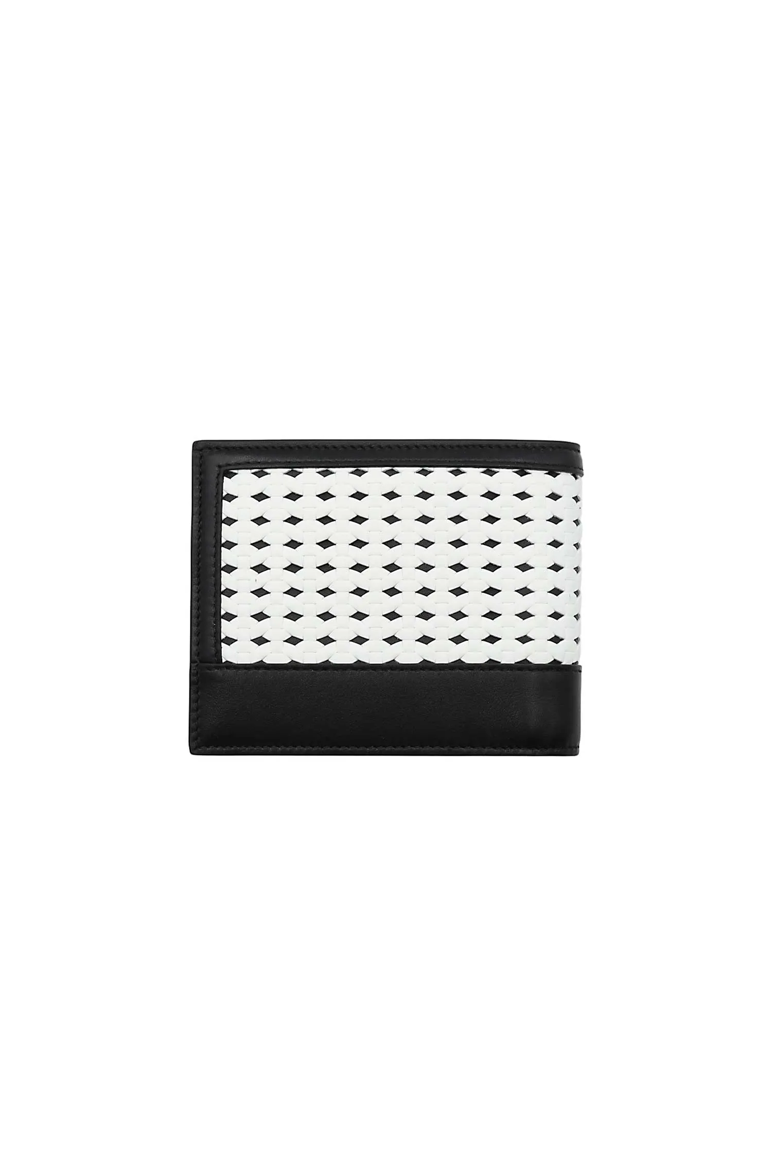 ПОРТМОНЕ ЧЁРНОЕ С БЕЛОЙ ПЛЕТЁНОЙ ОТДЕЛКОЙ, ВНУТРЕННИЙ КАРМАН С КЛАПАНОМ, СЕРЕБРИСТАЯ ЛОГО-НАДПИСЬ
