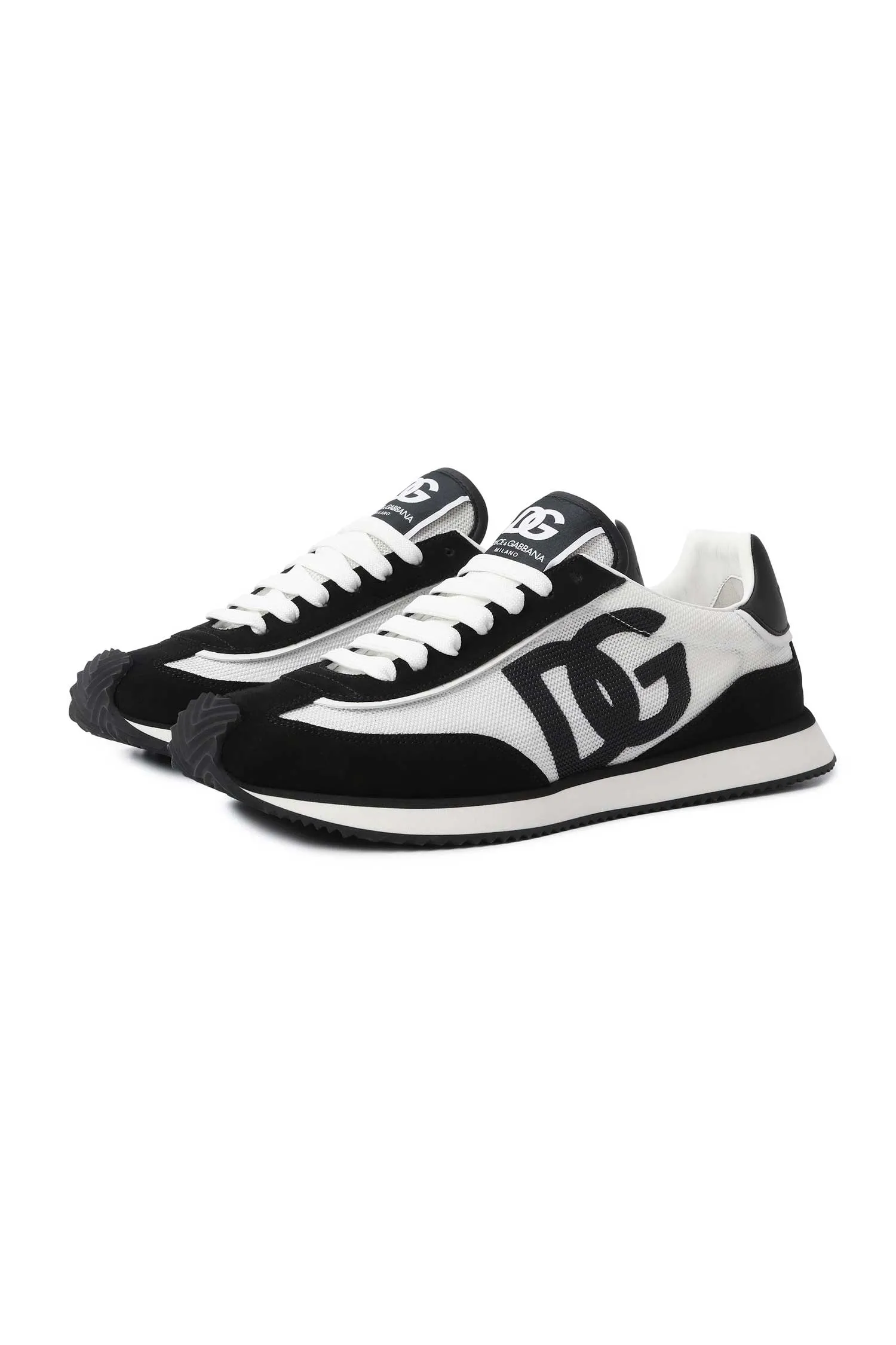 КРОССОВКИ DG CUSHION ЧЁРНО-БЕЛЫЕ КОМБИНИР., СЕТКА+ЗАМША, СБОКУ ЧЁРНОЕ ЛОГО DG, ПРОРЕЗИНЕН.НОС, К=2,5