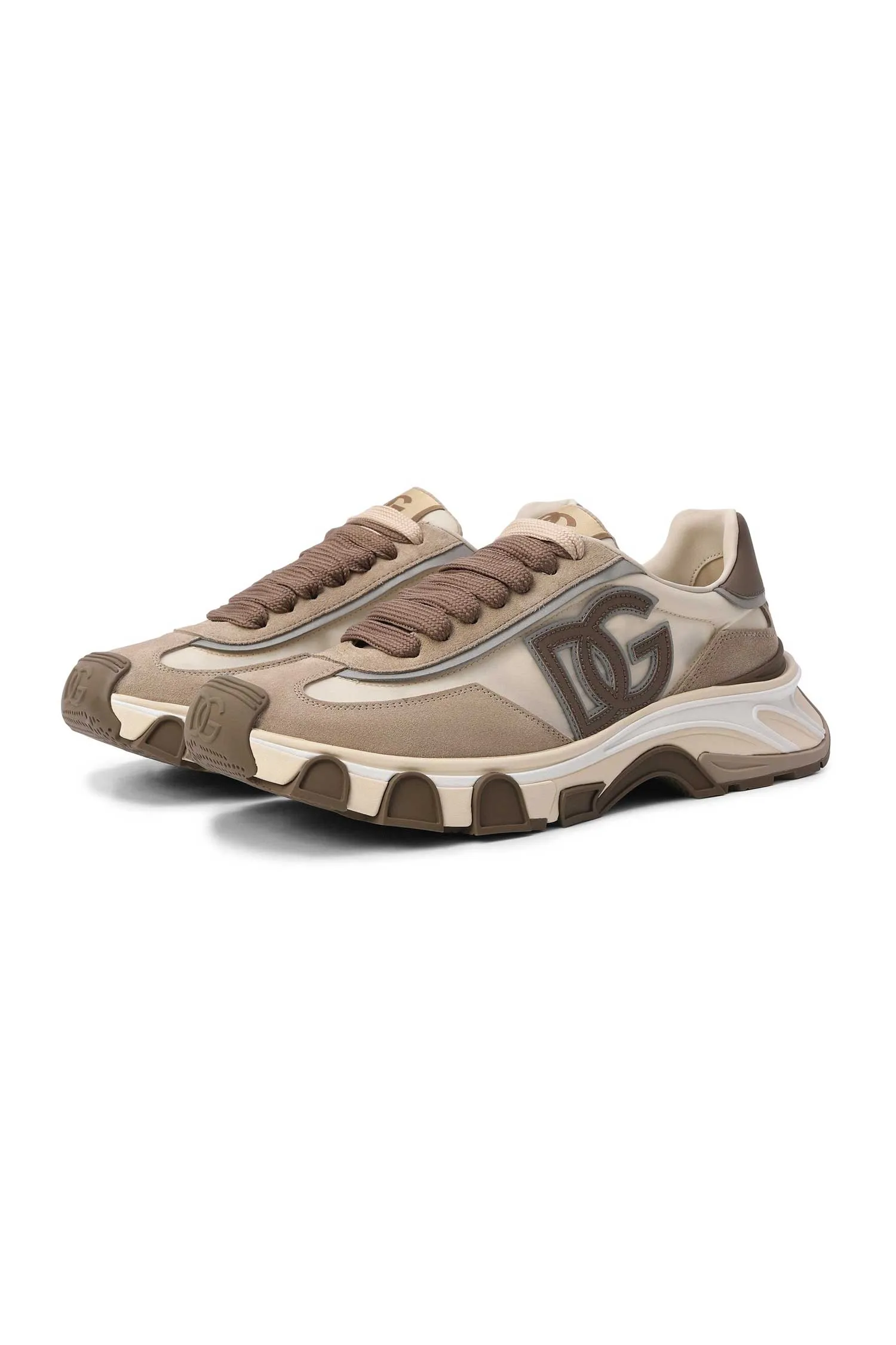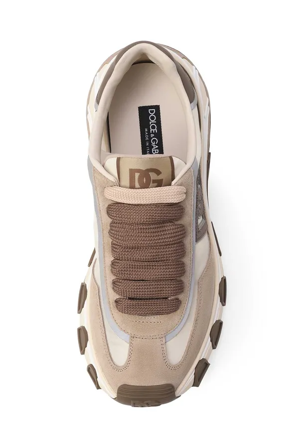 DOLCE&GABBANA КРОССОВКИ DG COUNTRY ROAD МОЛОЧНО-БЕЖЕВЫЕ, НЕЙЛОН+ЗАМША, СБОКУ Т/КОРИЧНЕВОЕ ЛОГО DG, ДВОЙНЫЕ ШНУРКИ, К=5