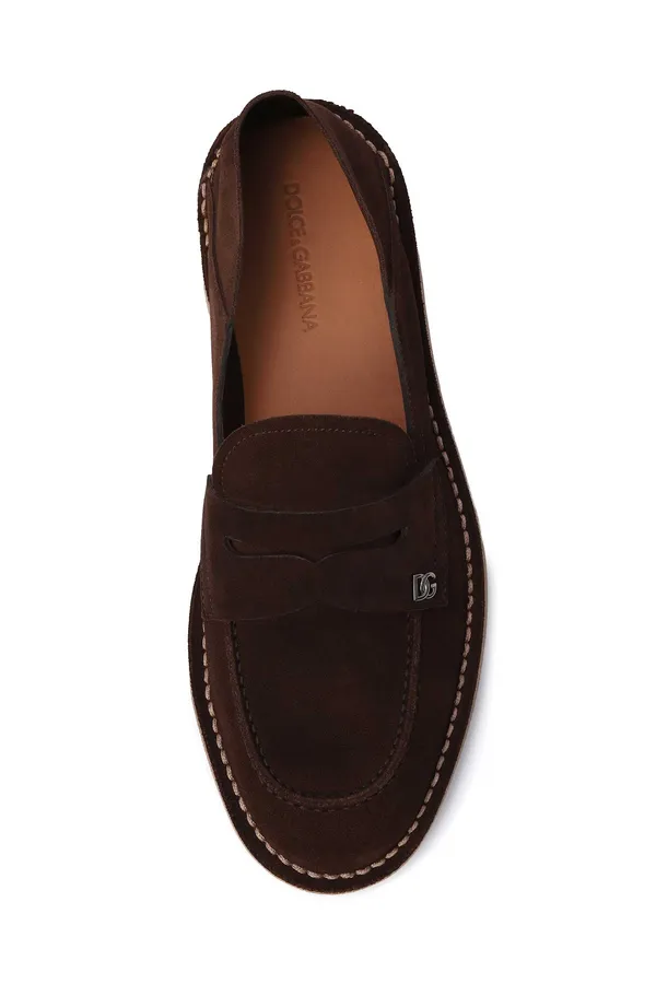 ЛОФЕРЫ NEW FLORIO IDEAL Т/КОРИЧНЕВЫЕ ЗАМША, ДЕКОРАТИВНЫЙ ШОВ, МЕТАЛЛ.ЛОГО DG, К=2