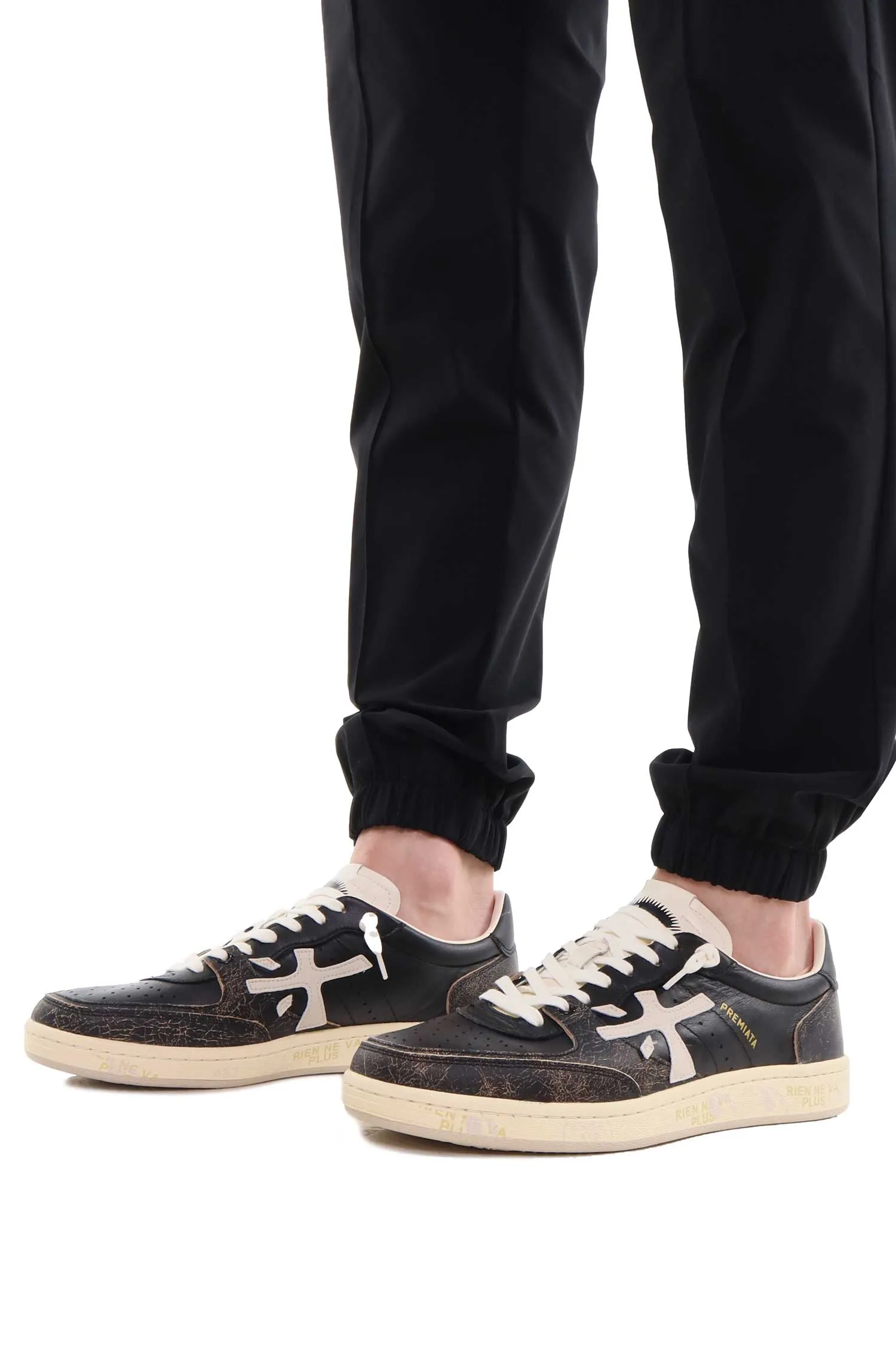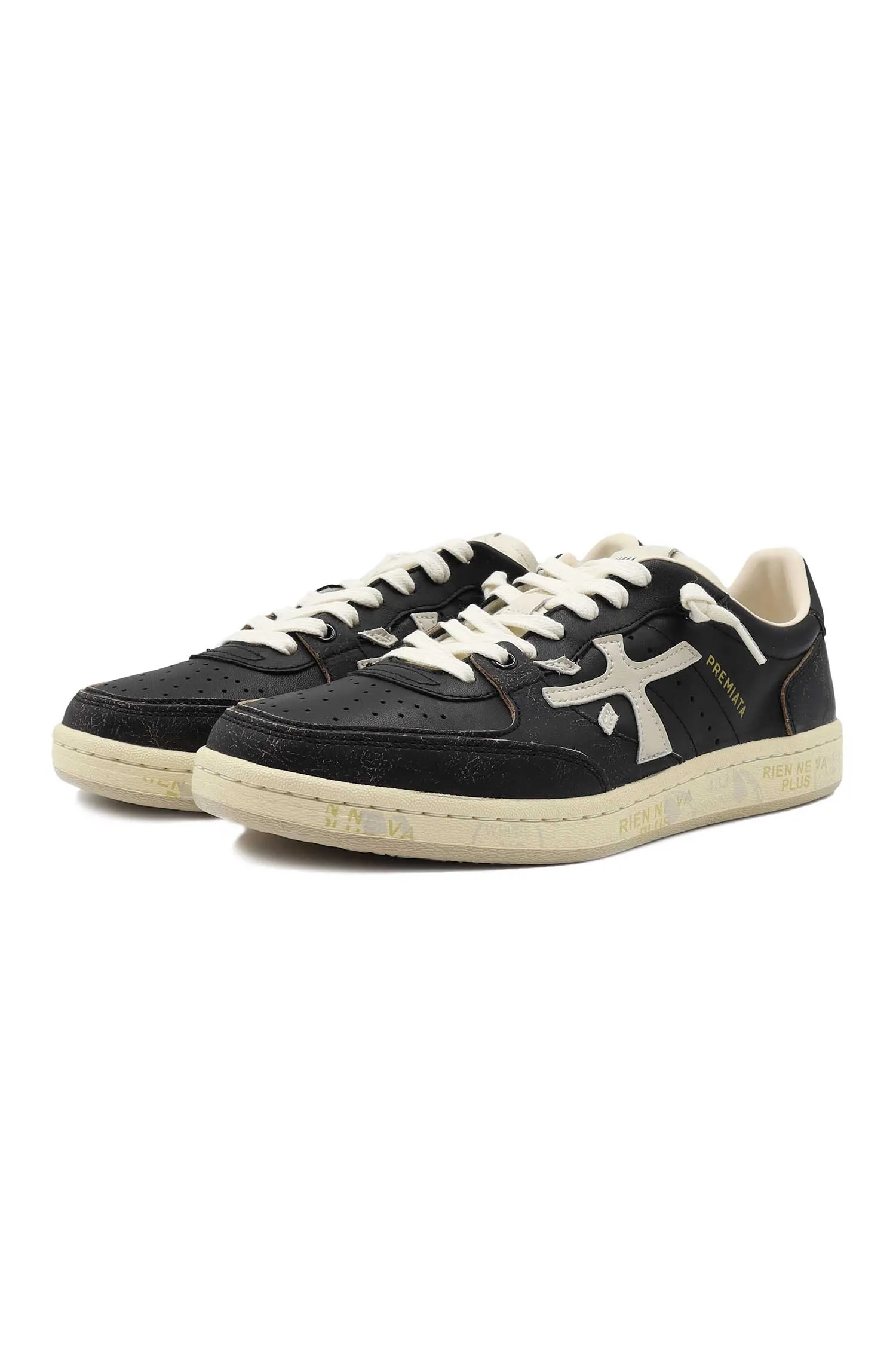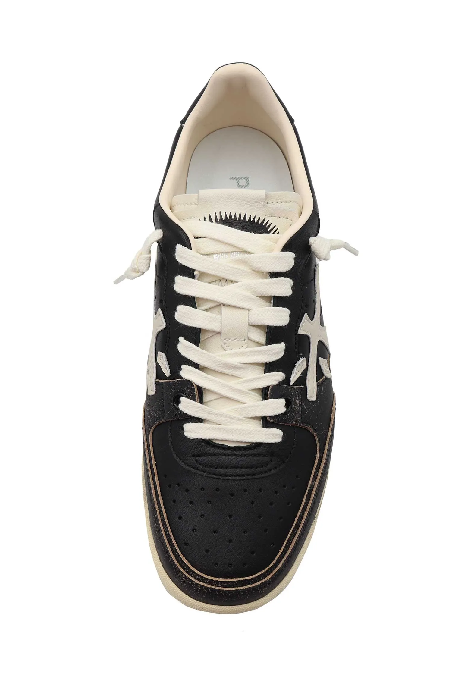 PREMIATA КЕДЫ BSKT CLAY ЧЁРНЫЕ ВИНТАЖ, МОЛОЧНАЯ ПОДКЛАДКА, ПЕРФОРАЦИЯ, К=3