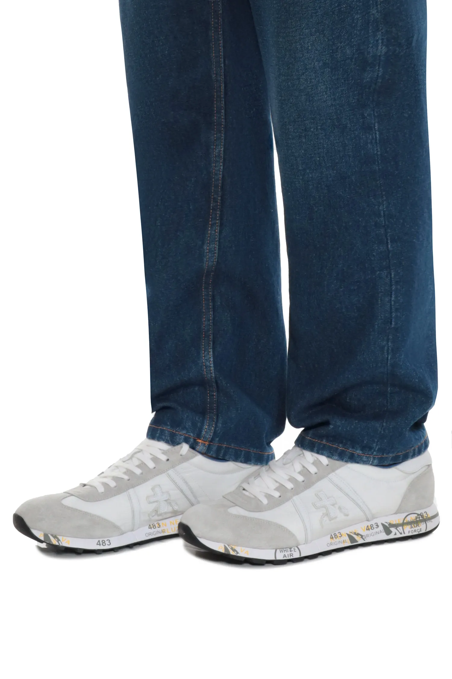 PREMIATA КРОССОВКИ LUCY БЕЛО-СЕРЫЕ КОМБИНИР., ЗАМША+НЕЙЛОН, СБОКУ ЛОГО В ТОН, СИНЯЯ ПОДКЛАДКА, К=2,5