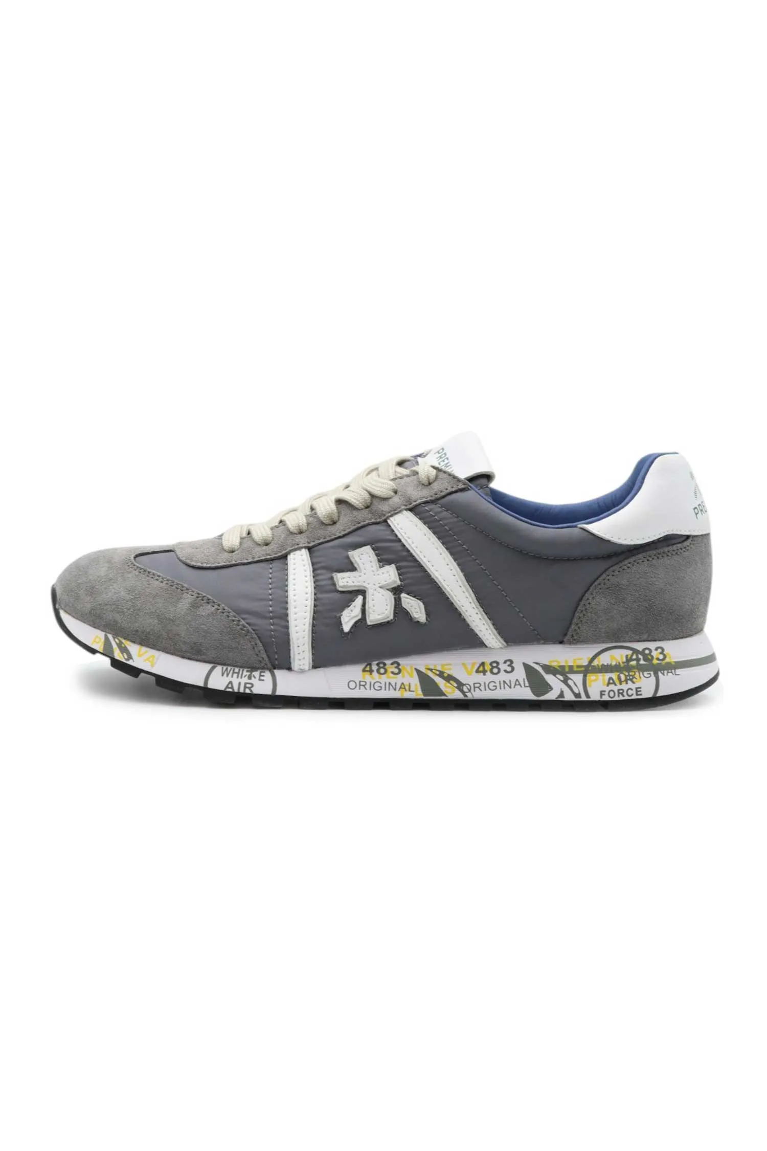 КРОССОВКИ LUCY Т/СЕРЫЕ КОМБИНИР., ЗАМША+НЕЙЛОН, СБОКУ БЕЛОЕ ЛОГО, СИНЯЯ ПОДКЛАДКА, К=2,5