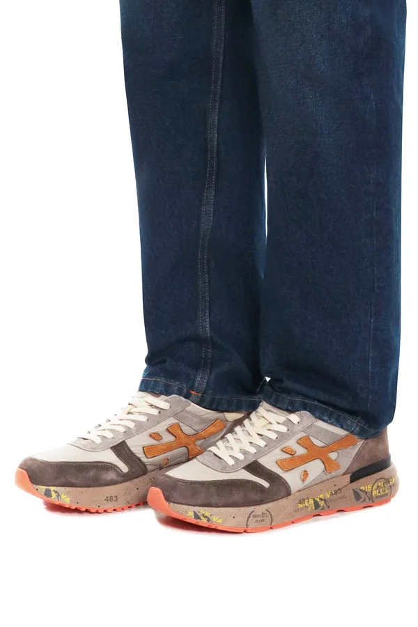 КРОССОВКИ MICK БЕЖЕВО-КОРИЧНЕВЫЕ КОМБИНИР., НЕЙЛОН+ЗАМША, СБОКУ ГОРЧИЧНОЕ ЛОГО, МОЛОЧНАЯ ПОДКЛАДКА, К=3,5