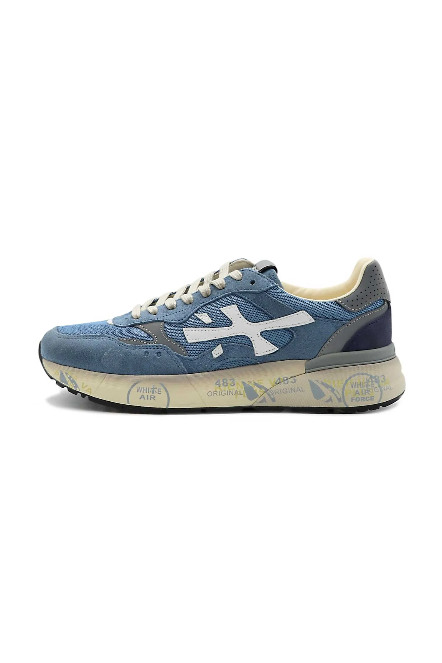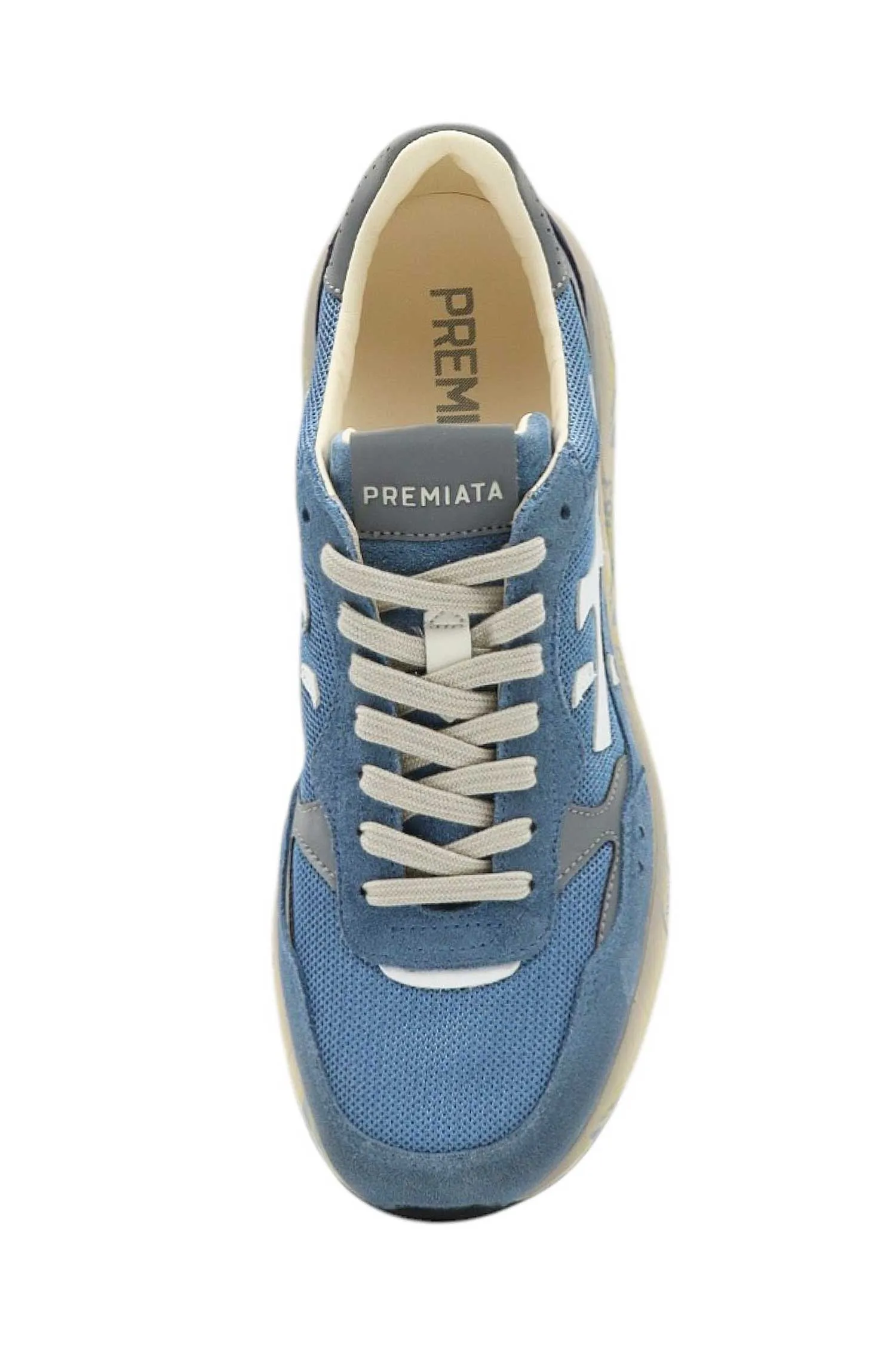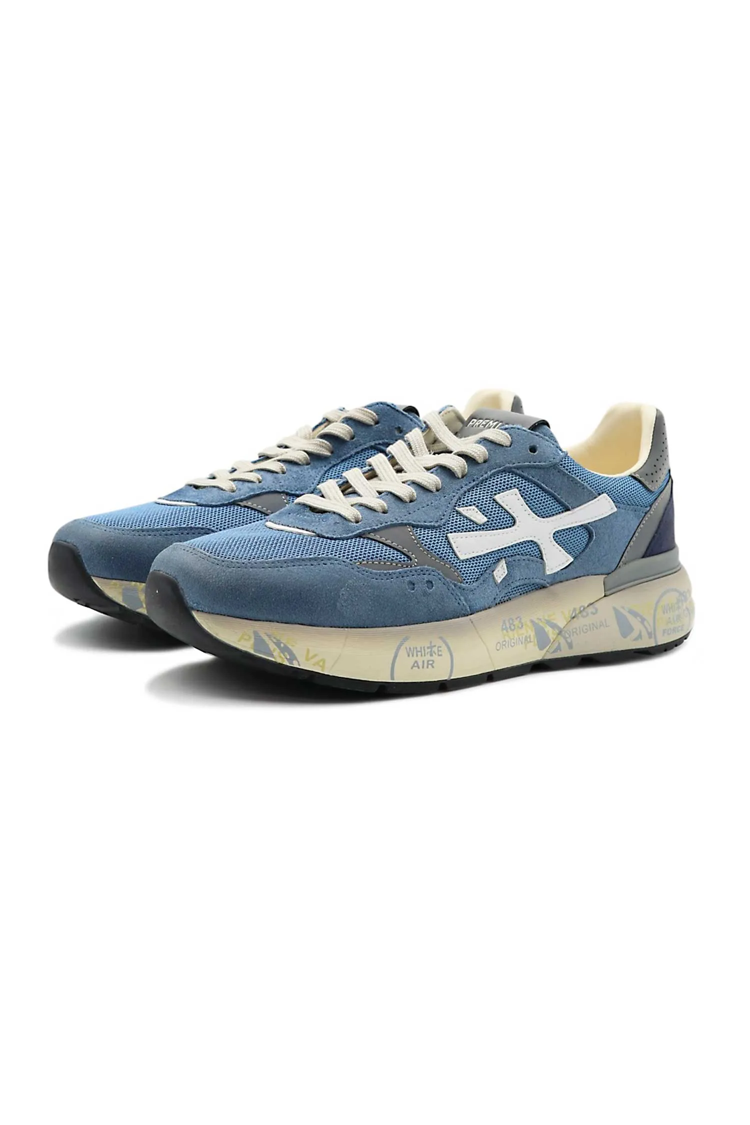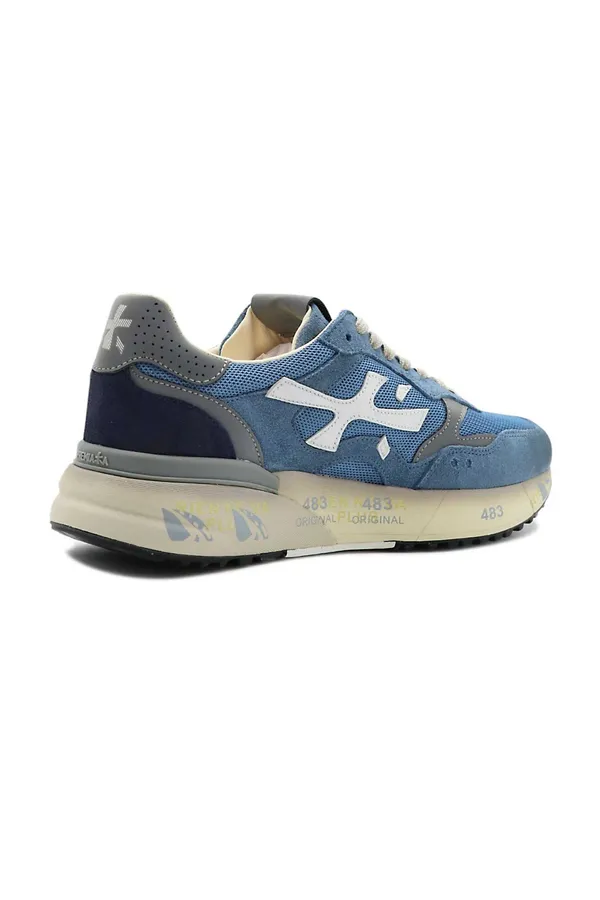 PREMIATA КРОССОВКИ MICK Т/ГОЛУБЫЕ КОМБИНИР., СЕТКА+ЗАМША, СЕРЫЕ ВСТАВКИ, СБОКУ БЕЛОЕ ЛОГО, МОЛОЧНАЯ ПОДКЛАДКА, К=3,5