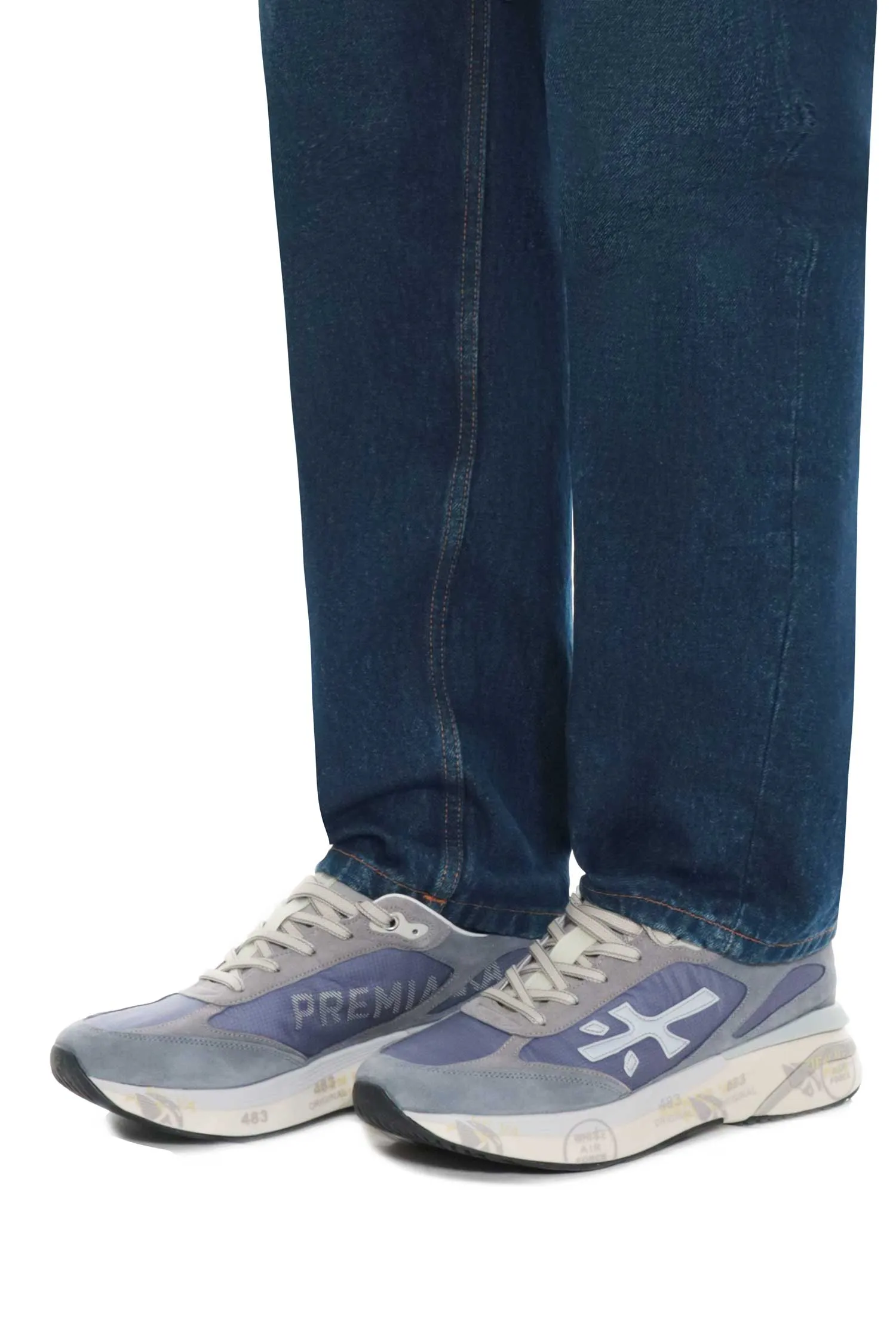 PREMIATA КРОССОВКИ MOERUN СИНЕ-СЕРЫЕ КОМБИНИР., НЕЙЛОН+ЗАМША, СБОКУ БЕЛАЯ ЛОГО-НАДПИСЬ, БЕЛАЯ ПОДКЛАДКА, К=5
