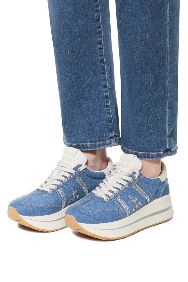 PREMIATA КРОССОВКИ BETH COIN СИНИЕ, ДЖИНСОВЫЕ, СБОКУ ЛОГО ИЗ СТРАЗ, БЕЛАЯ ПЯТКА, ПЛАТО=5