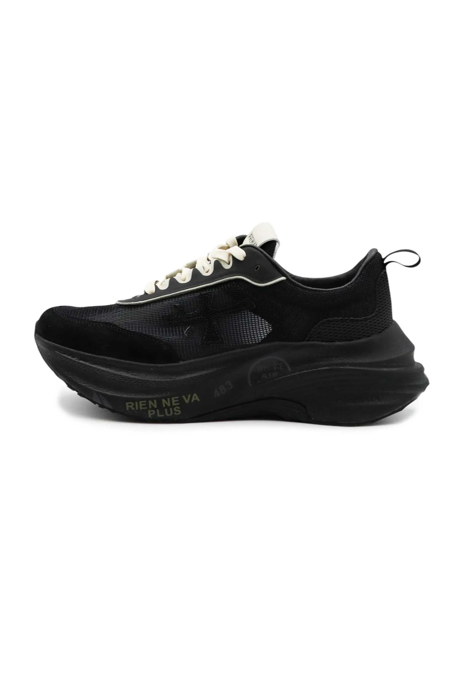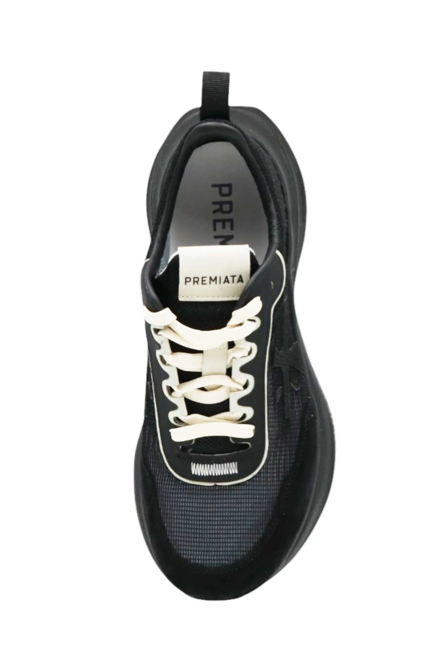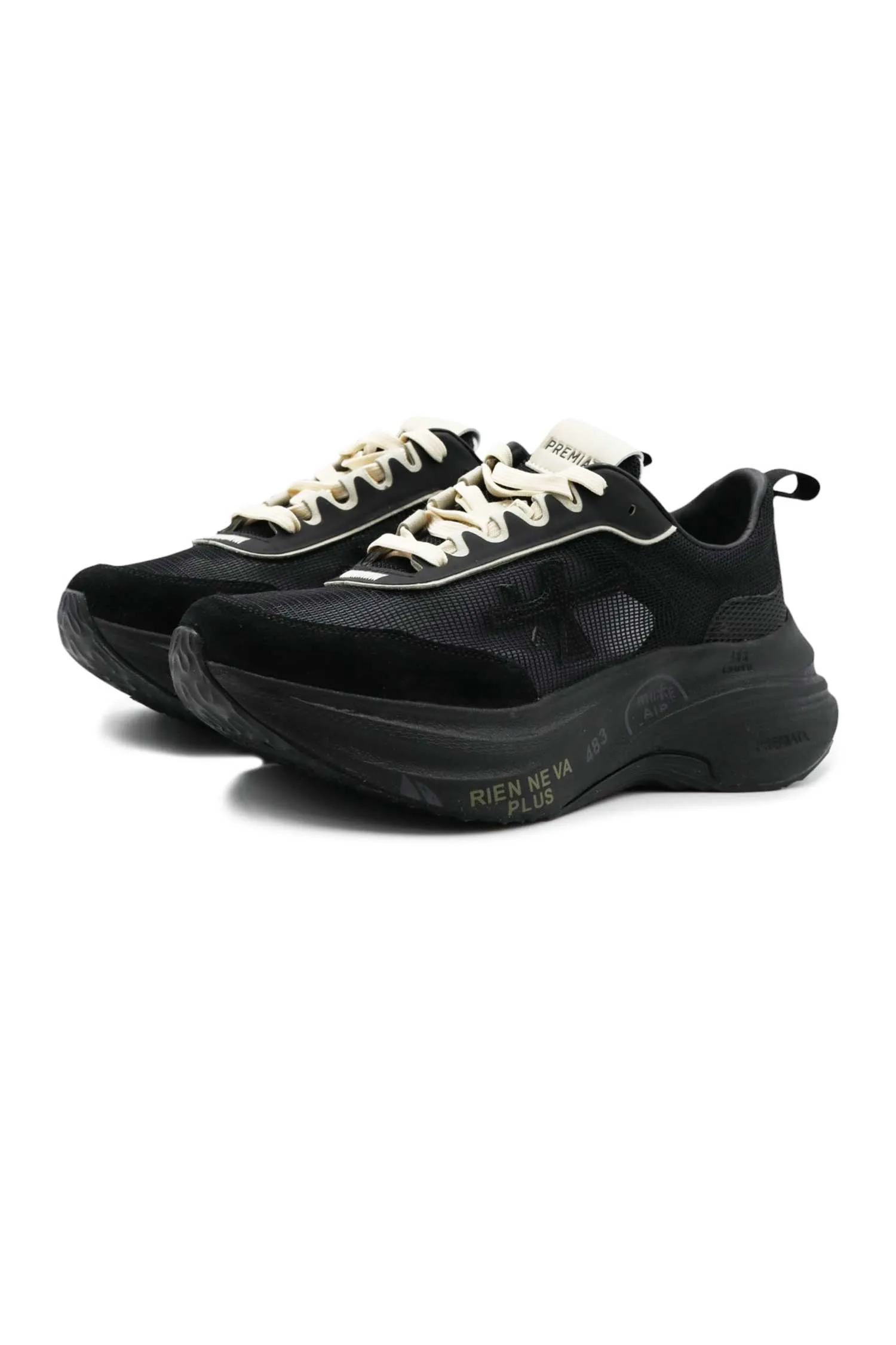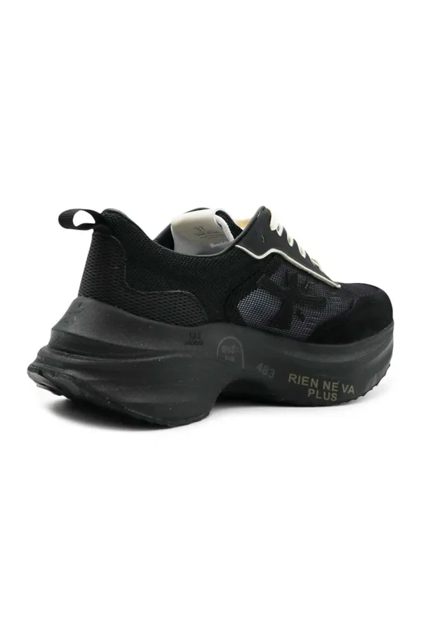 PREMIATA КРОССОВКИ HILL ЧЁРНЫЕ, ЗАМША+СЕТКА, МОЛОЧНЫЕ ШНУРКИ, К=7