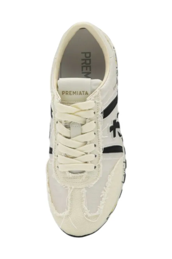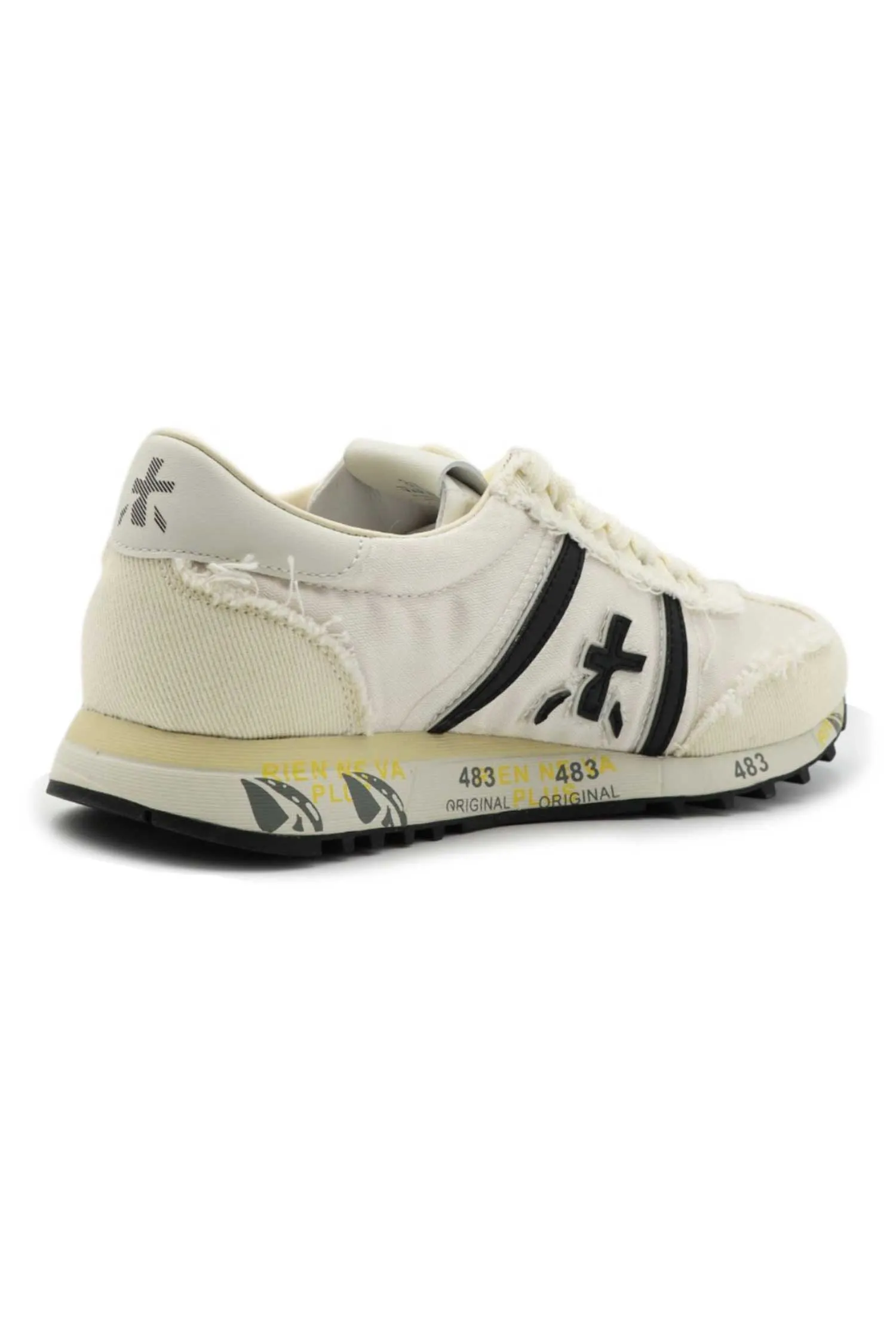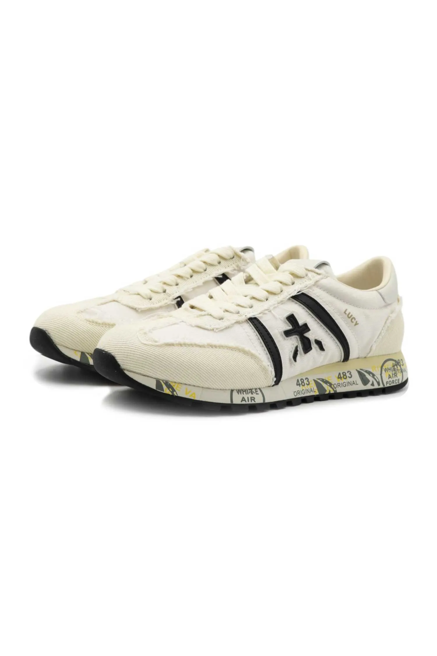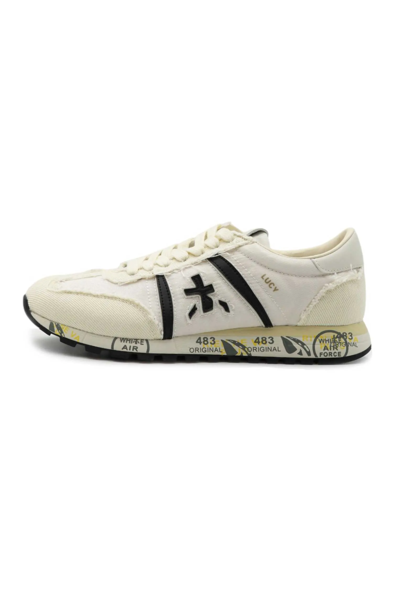 КРОССОВКИ LUCYD МОЛОЧНЫЕ КОМБИНИР, НЕЙЛОН+ТЕКСТИЛЬ, НЕОБРАБОТАННЫЕ КРАЯ, СБОКУ ЧЁРНОЕ ЛОГО, К=2