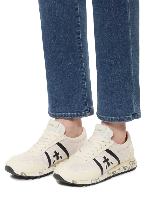 КРОССОВКИ LUCY-D МОЛОЧНЫЕ КОМБИНИР., НЕЙЛОН+ТЕКСТИЛЬ, НЕОБРАБОТАННЫЕ КРАЯ, СБОКУ ЧЁРНОЕ ЛОГО, К=2