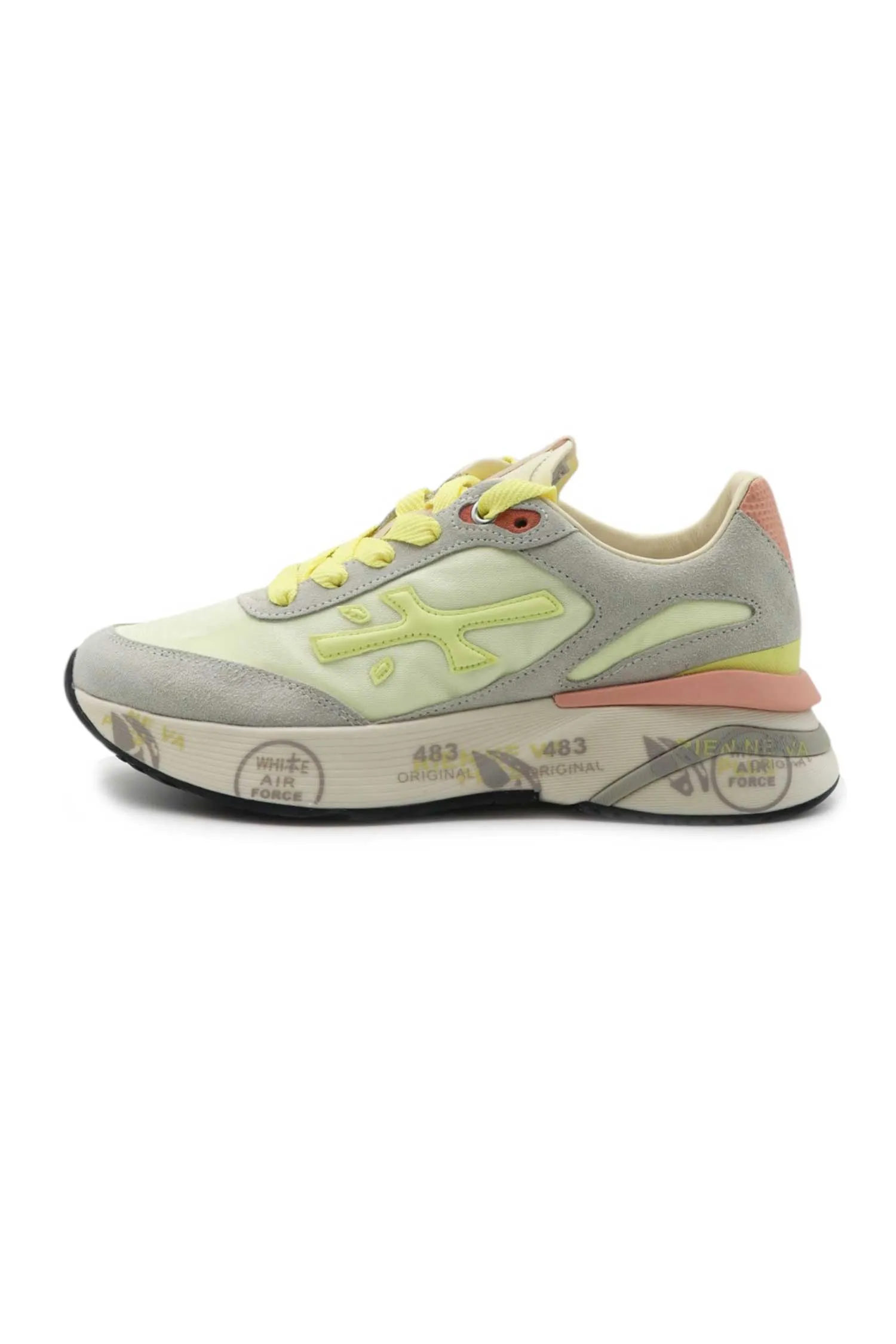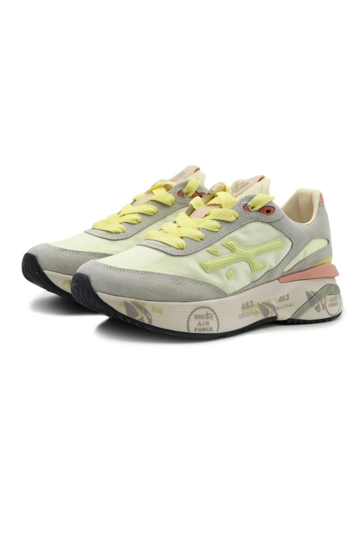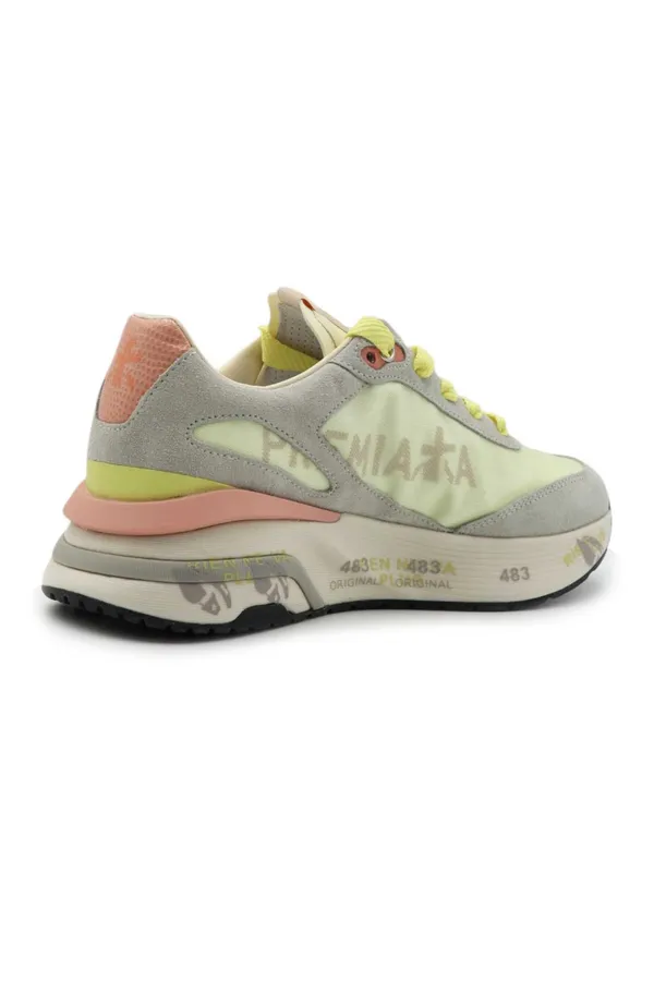 PREMIATA КРОССОВКИ MOERUN-D СВ/ЖЁЛТО-СЕРЫЕ КОМБИНИР., НЕЙЛОН+ЗАМША, СВ/РОЗОВАЯ ПЯТКА, ОТД.ПИТОН, К=4