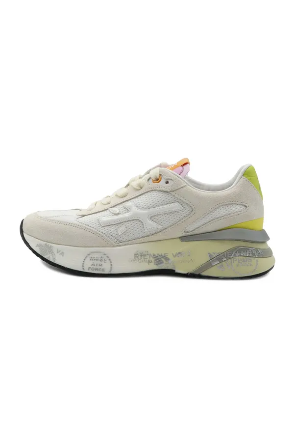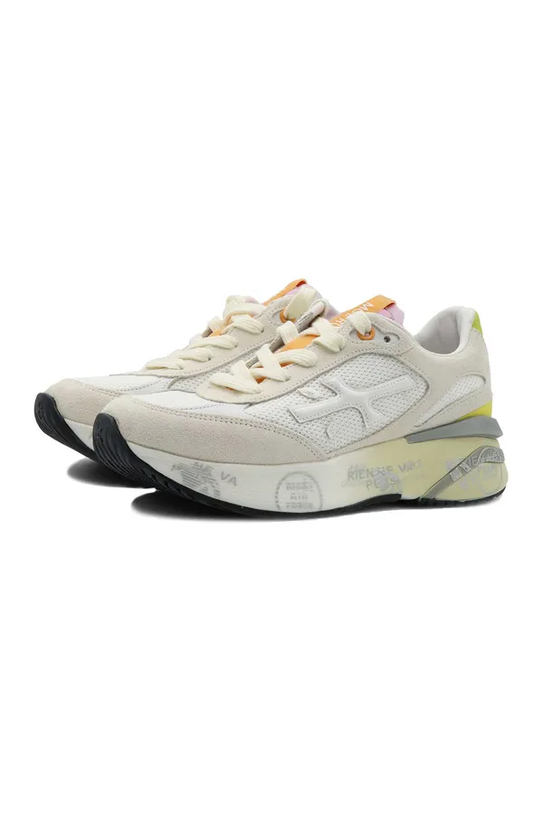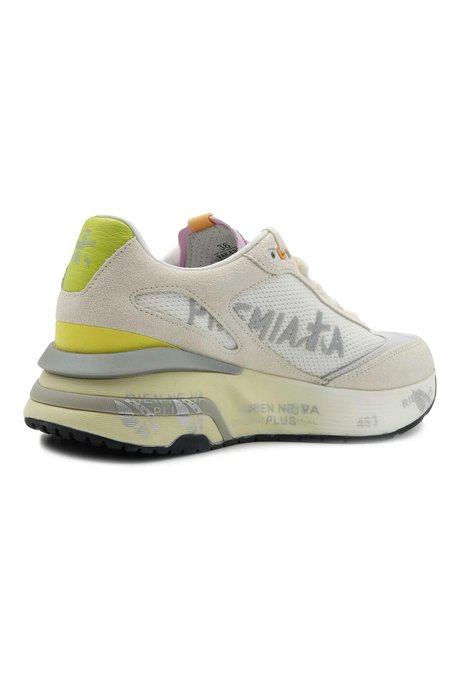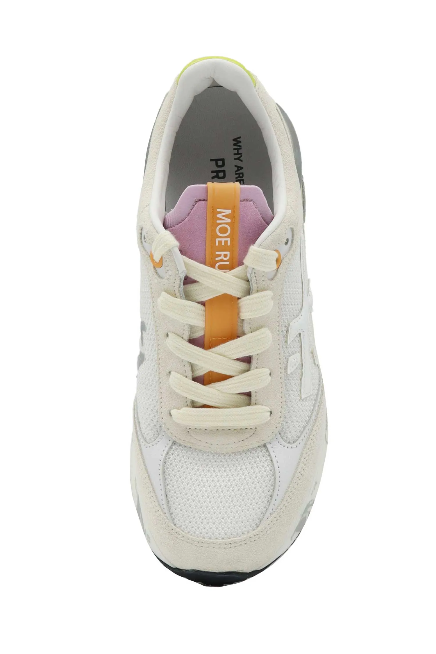 КРОССОВКИ MOERUN-D БЕЛЫЕ, КОМБИНИР., СЕТКА+ЗАМША+КОЖА, СИРЕНЕВЫЙ ЯЗЫЧОК, ЛАЙМОВАЯ ПЯТКА, К=4