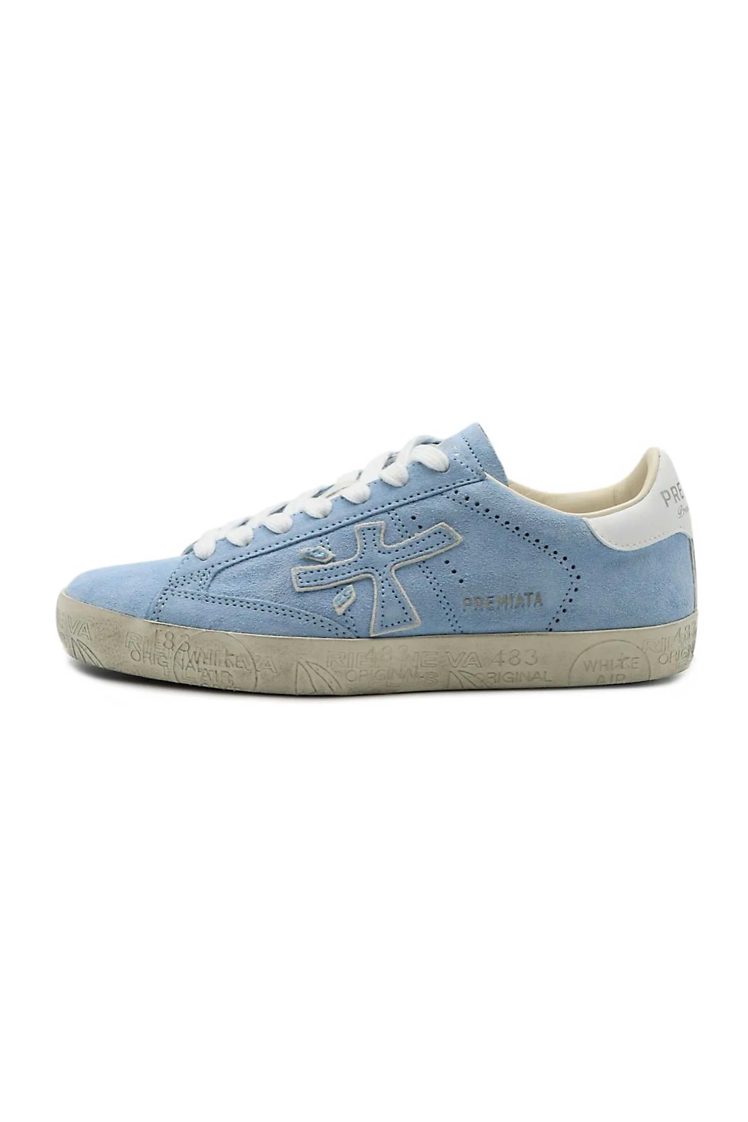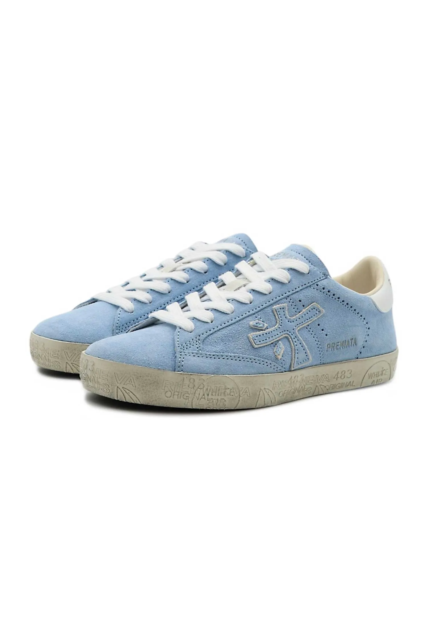PREMIATA КЕДЫ STEVEN-D СВ/ГОЛУБЫЕ ЗАМША, ЛОГО В ТОН, БЕЛАЯ ПЯТКА И ШНУРКИ, К=2