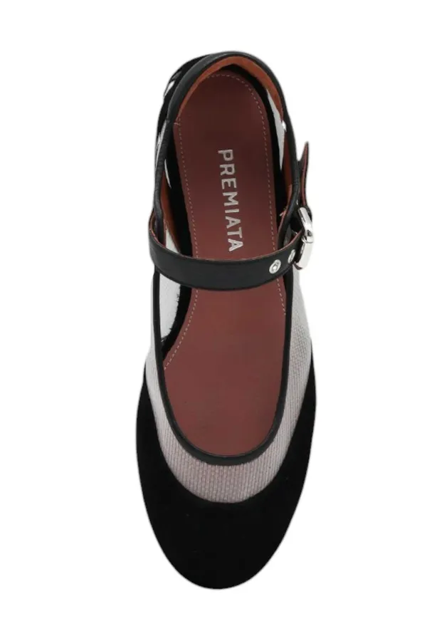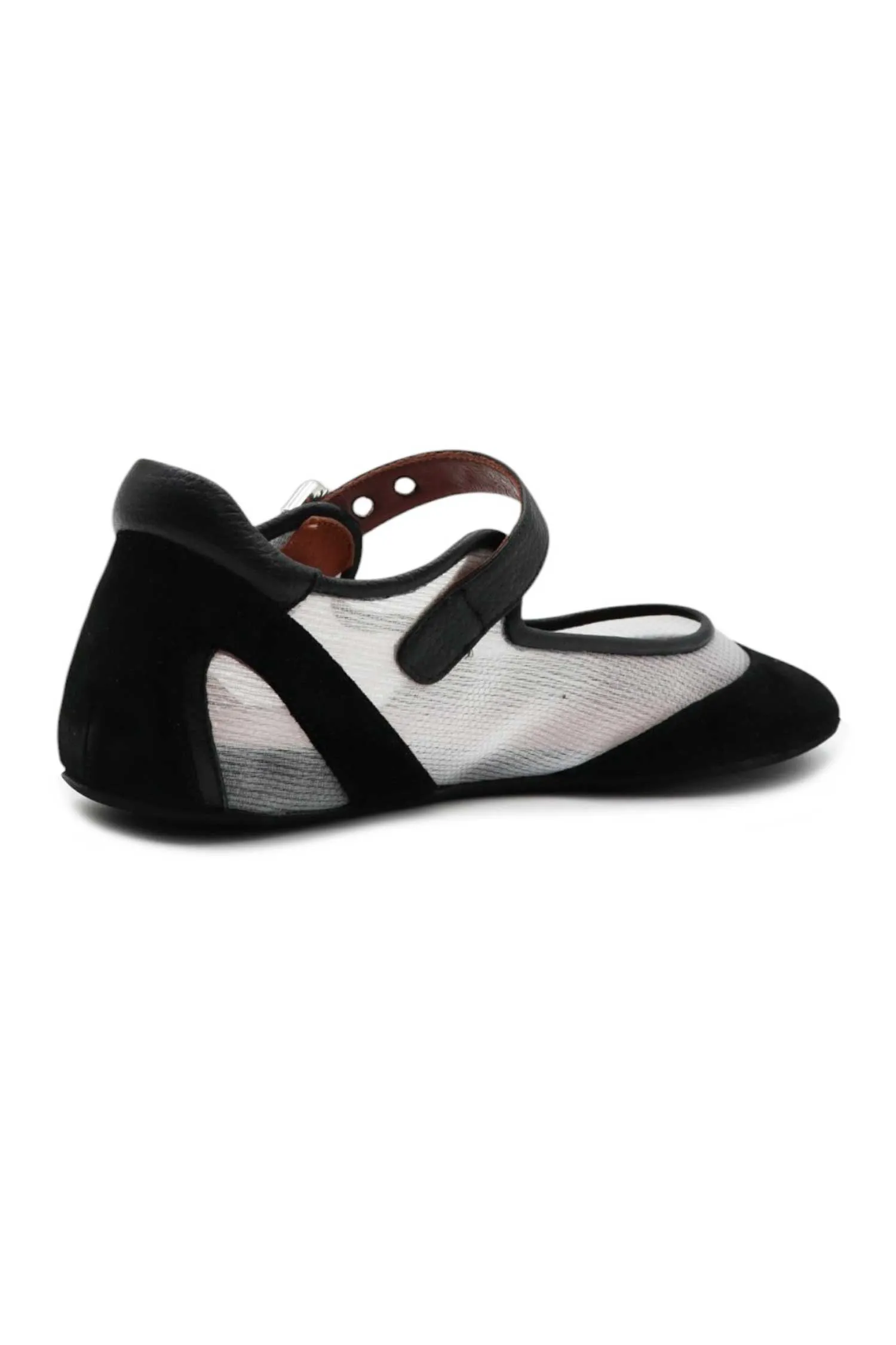 PREMIATA ТУФЛИ-БАЛЕТКИ ЧЁРНО-БЕЛЫЕ КОМБИНИР., ЗАМША+СЕТКА, РЕМЕШОК С СЕРЕБРИСТОЙ ПРЯЖКОЙ, К=0,5
