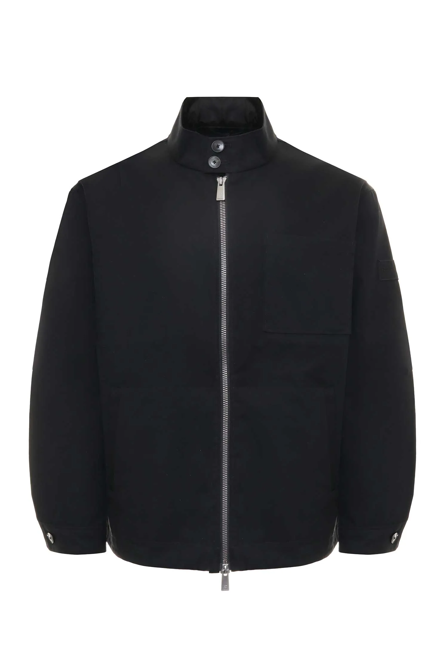 КУРТКА ЧЁРНАЯ ТЕКСТИЛЬ, НА МОЛНИИ, НА ГРУДИ НАКЛАДНОЙ КАРМАН, ВОРОТ-СТОЙКА НА ПУГОВИЦАХ