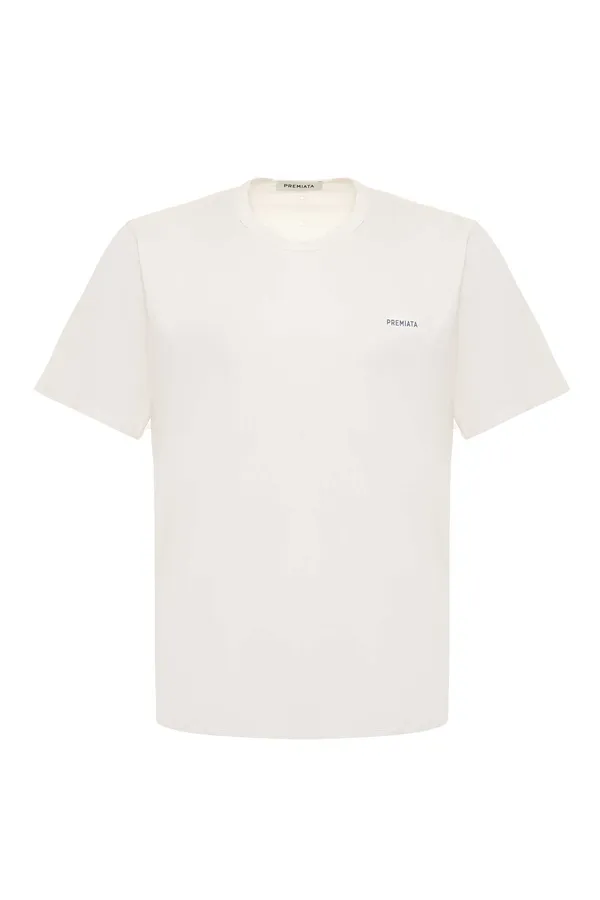 ФУТБОЛКА М.1032 БЕЛАЯ, НА ГРУДИ МАЛЕНЬКАЯ ГОЛУБАЯ ЛОГО-НАДПИСЬ