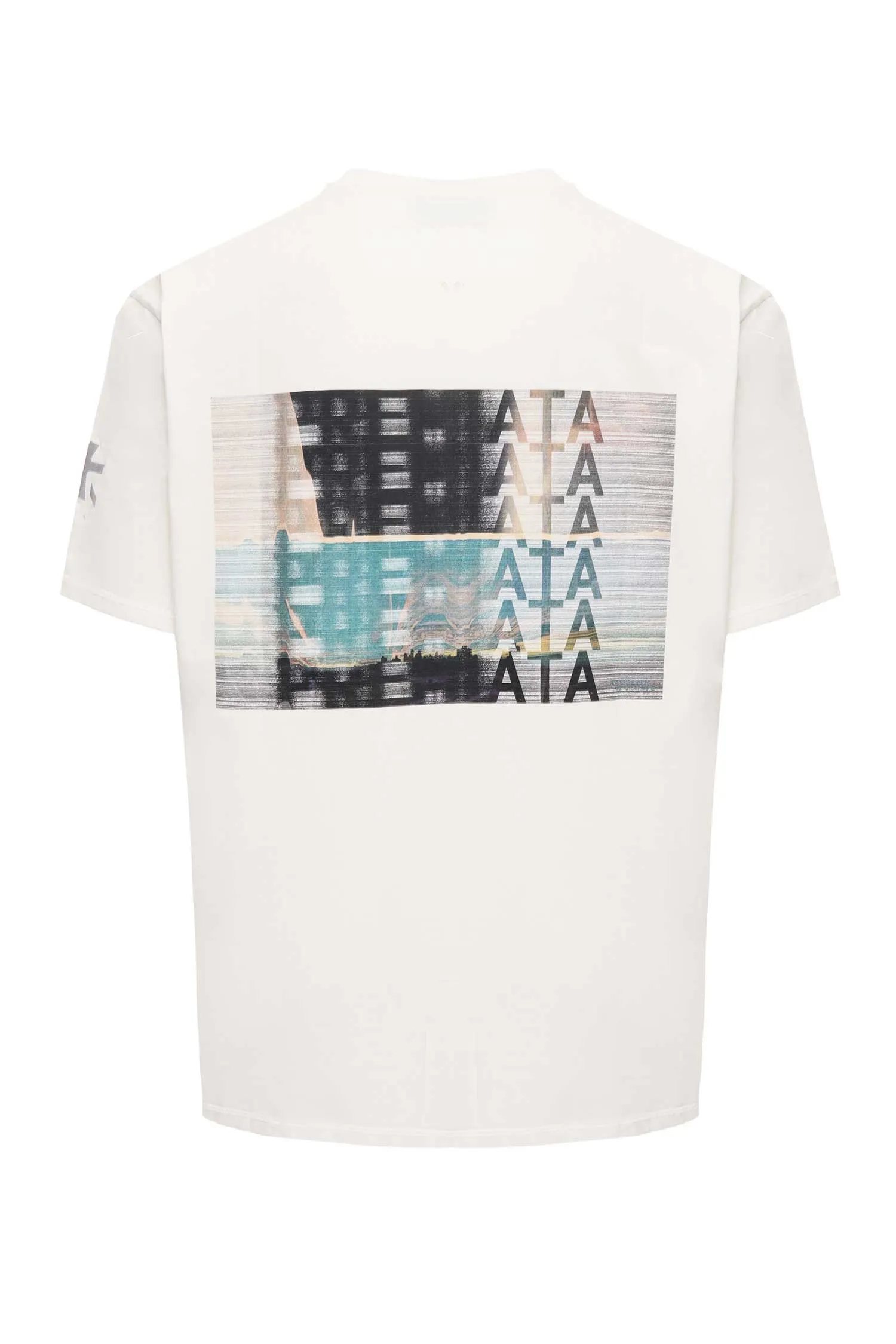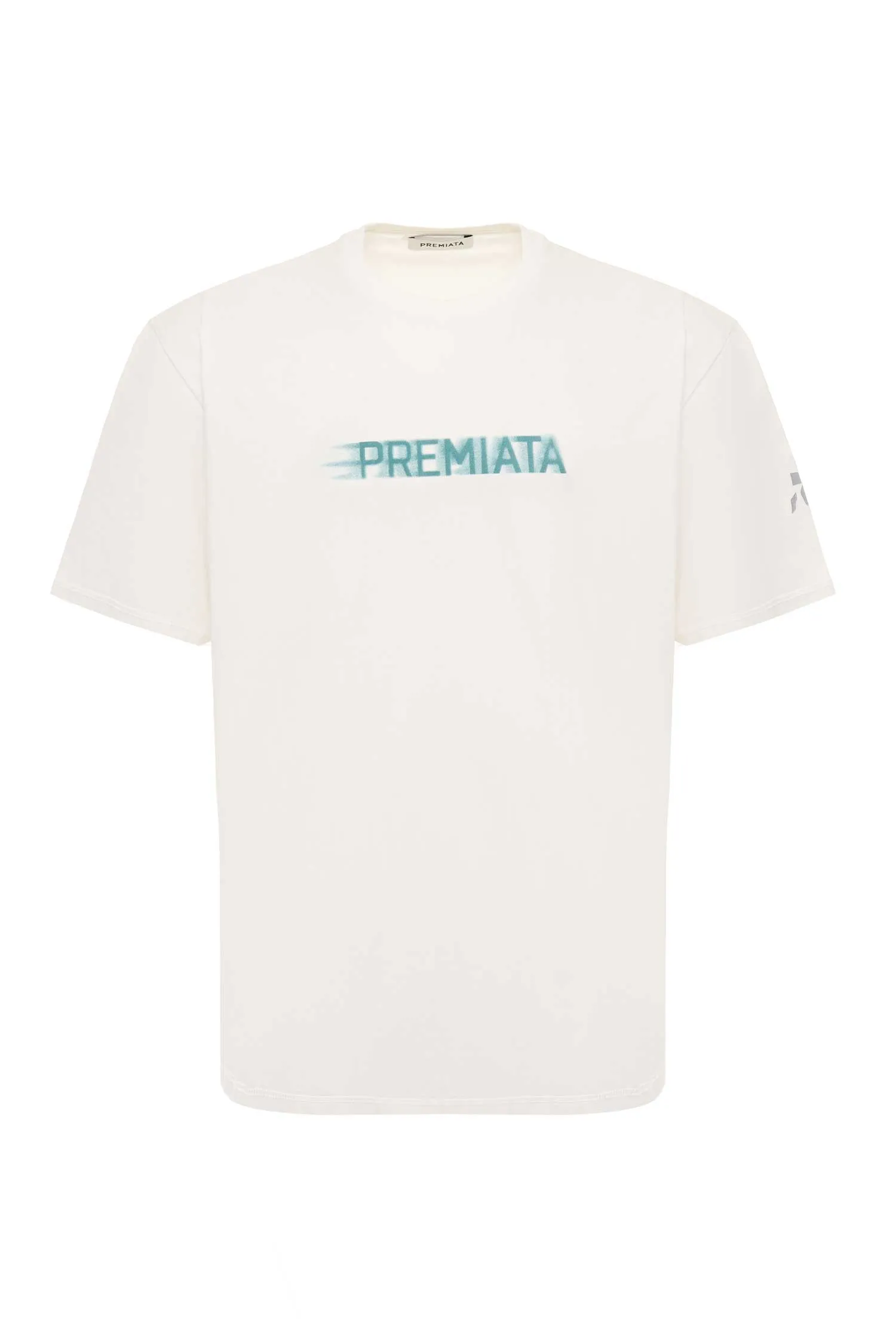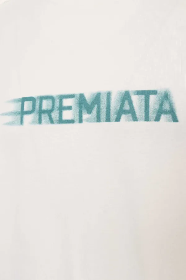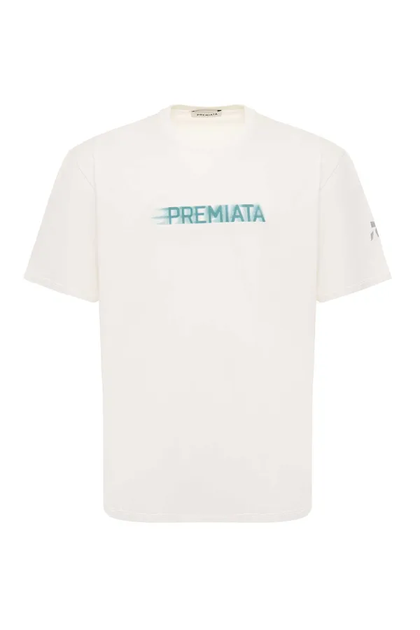 PREMIATA ФУТБОЛКА БЕЛАЯ, НА ГРУДИ ЗЕЛЁНАЯ РАЗМЫТАЯ ЛОГО-НАДПИСЬ, НА СПИНЕ ЛОГО-СТЕРЕОГРАММА