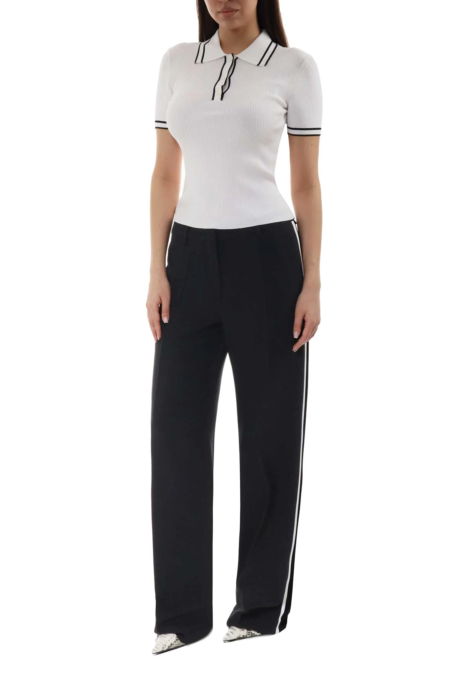 ICEBERG БРЮКИ ЧЁРНЫЕ С БЕЛЫМИ ЛАМПАСАМИ, СЗАДИ ПРОРЕЗНОЙ КАРМАН, МЕТАЛЛ.ЛОГО