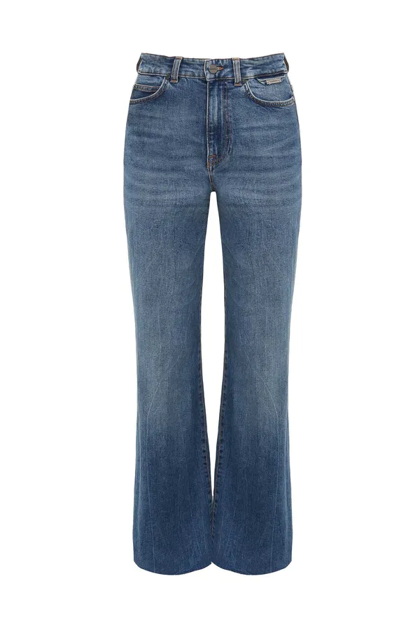 ДЖИНСЫ СИНИЕ С ЭФФЕКТОМ ПОМЯТОСТИ, СВОБОДНЫЕ, ВЫБЕЛЕННЫЕ, Ш=29