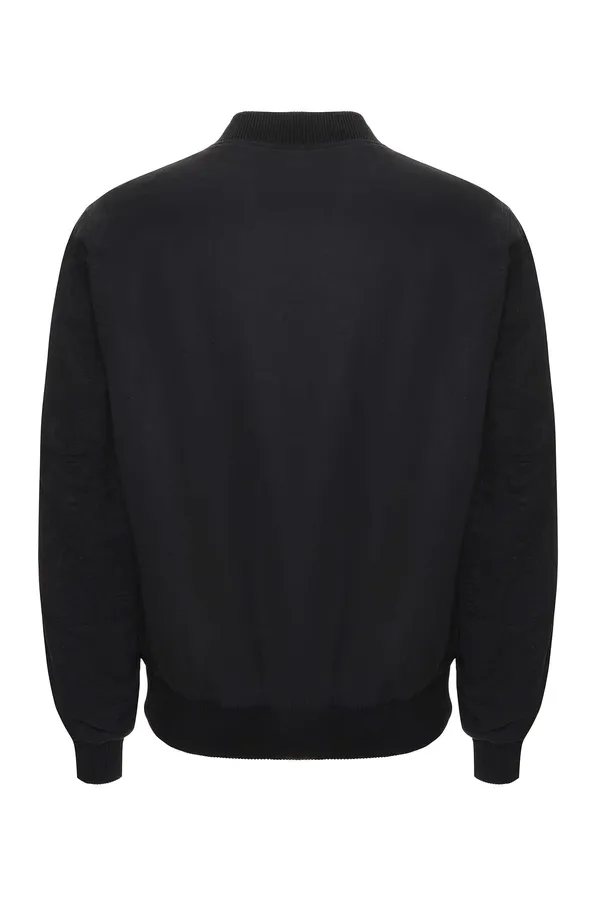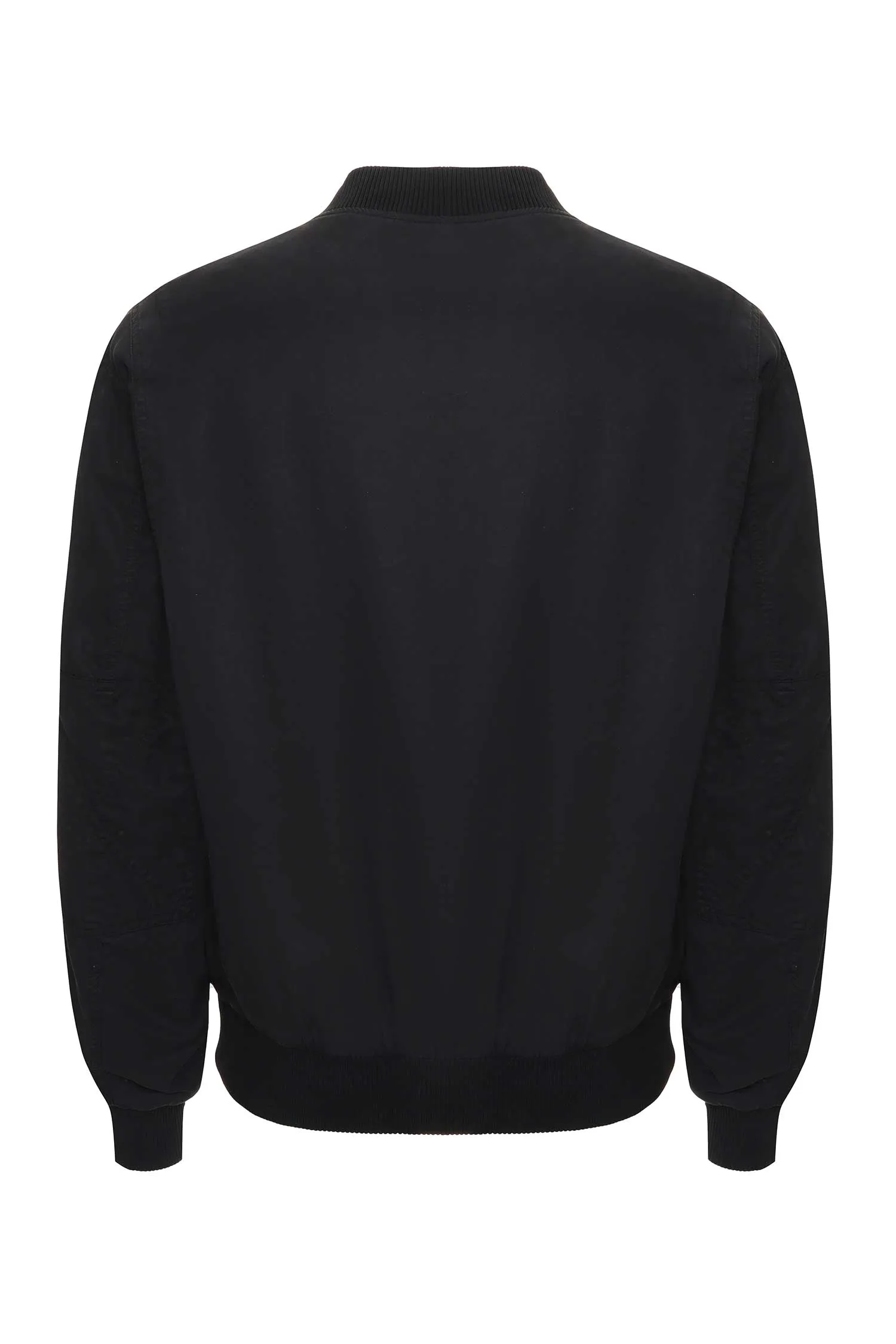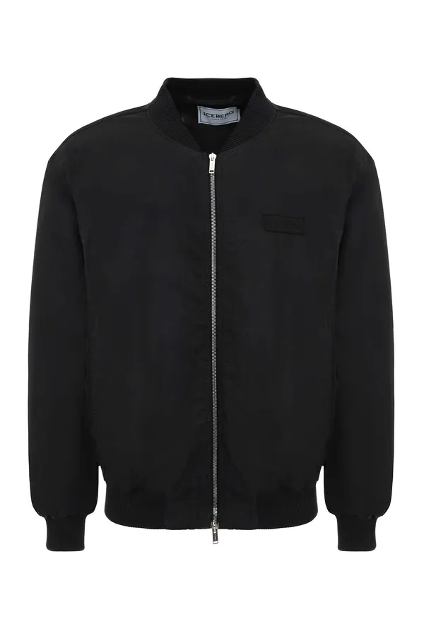 БОМБЕР ЧЁРНЫЙ, ТОНКИЙ, НА ГРУДИ НАШИВКА-ЛОГО, ТРИКОТАЖНЫЕ МАНЖЕТЫ