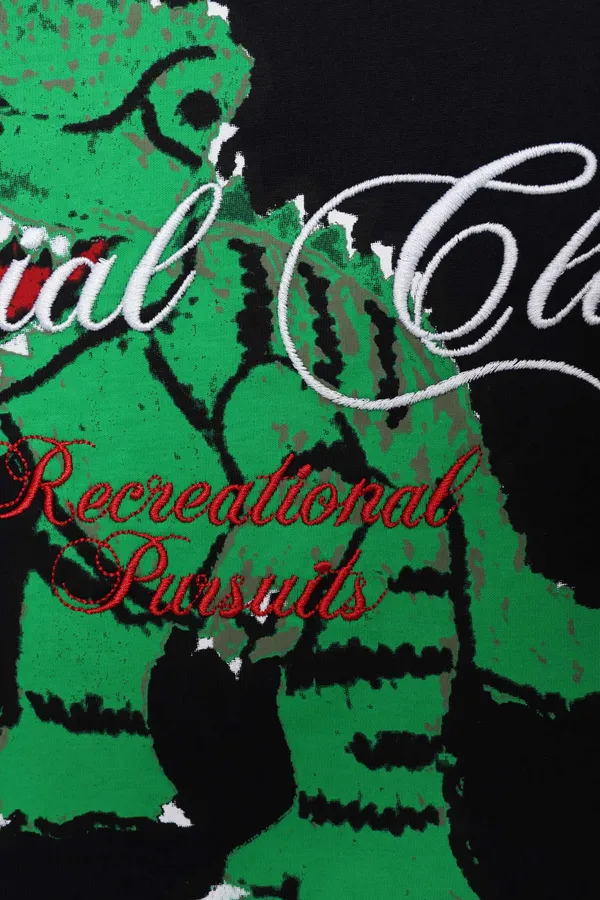 ФУТБОЛКА ЧЁРНАЯ, НА СПИНЕ ЗЕЛЁНЫЙ РИС.ДИНОЗАВР, ВЫШИТЫЕ БЕЛЫЕ НАДПИСИ