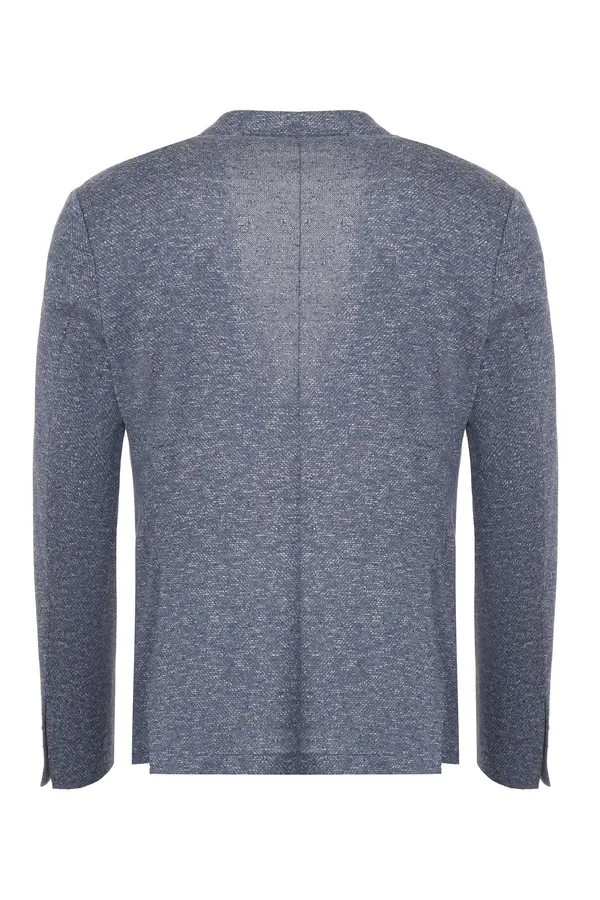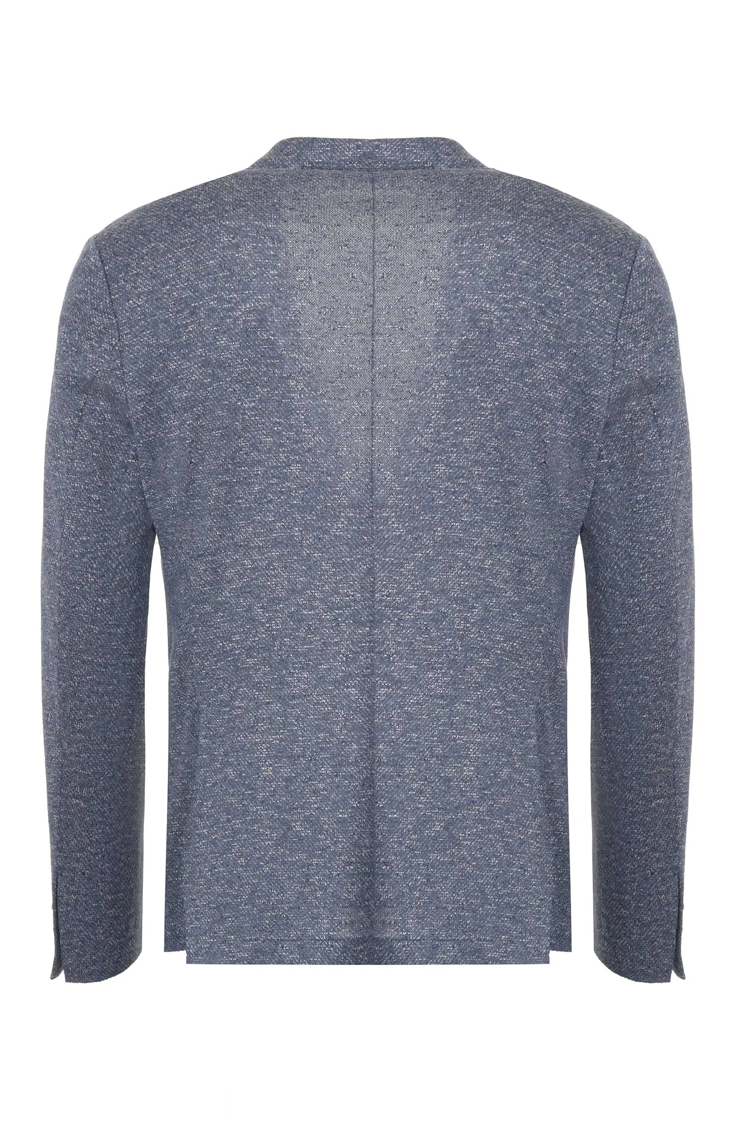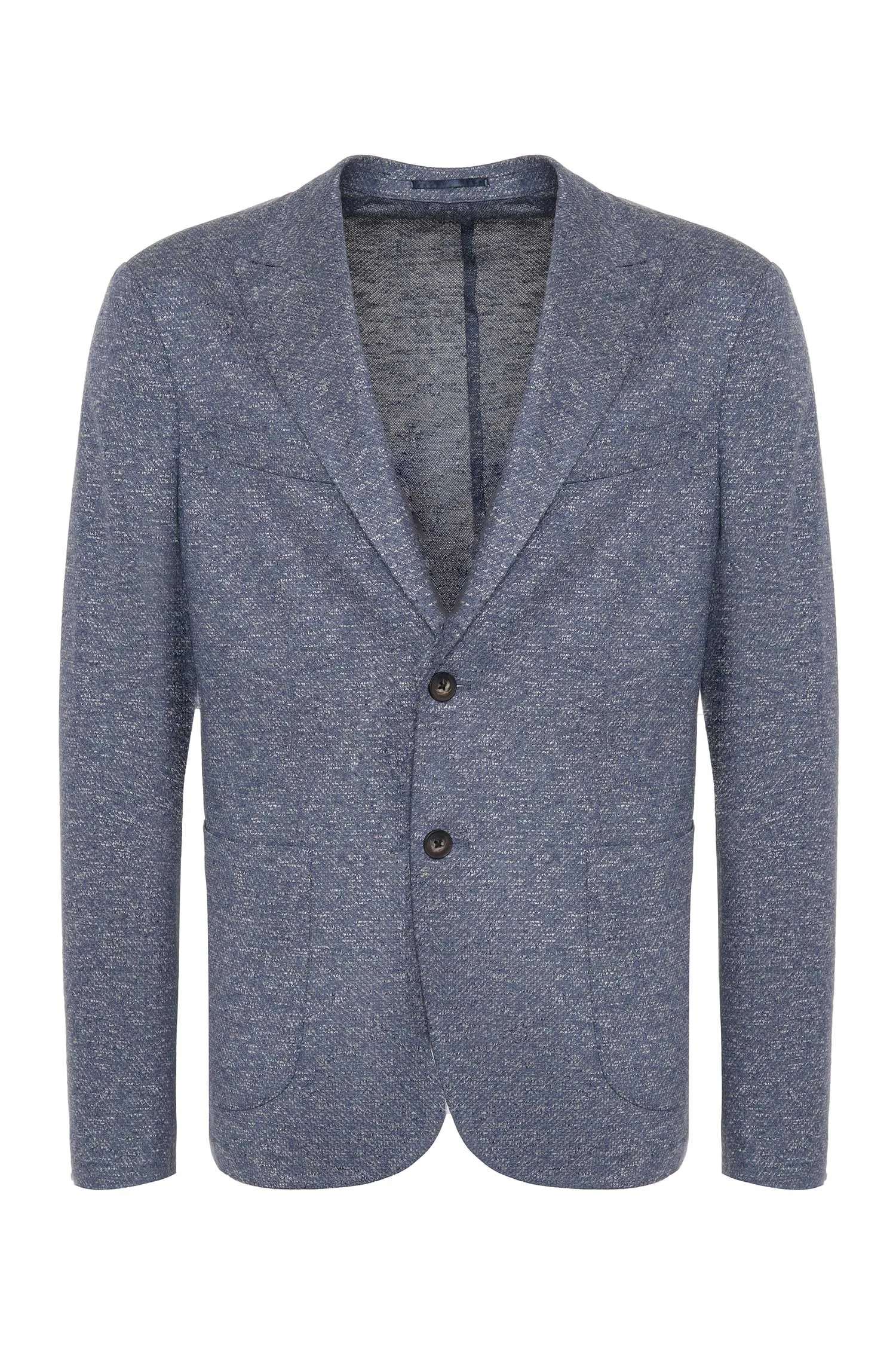 ПИДЖАК СИНЕ-СЕРЫЙ МЕЛАНЖ, БЕЗ ПОДКЛАДКИ, НАКЛАДНЫЕ КАРМАНЫ, СЗАДИ РАЗРЕЗЫ