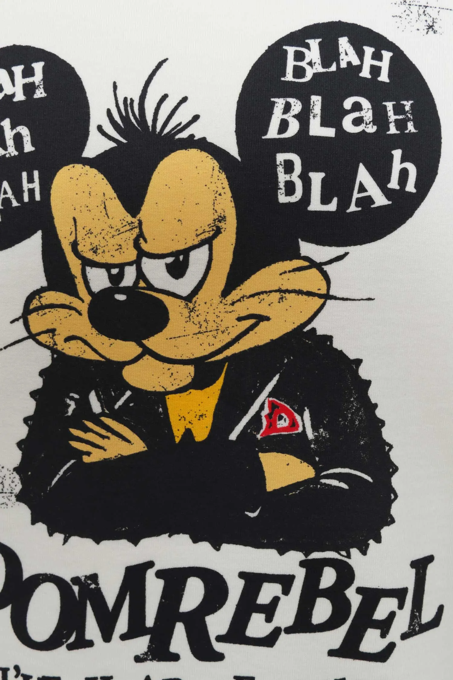 ФУТБОЛКА BLABLA МОЛОЧНАЯ, НА ГРУДИ И СПИНЕ РИС. МИККИ МАУС, НАДПИСЬ I HAVE HEARD ENOUGH