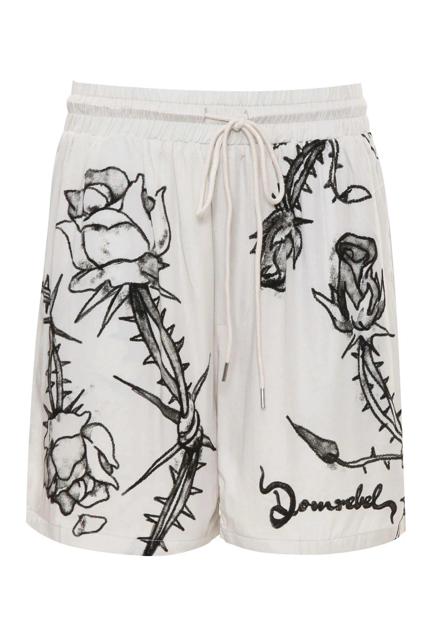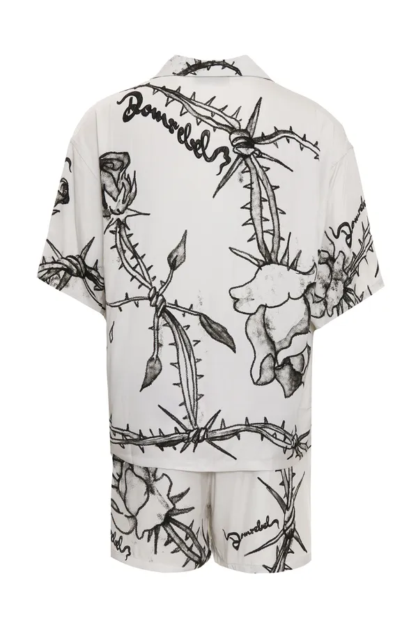 КОСТЮМ БЕЛЫЙ, ПРИНТ РОЗЫ, РУБАШКА+ШОРТЫ НА КУЛИСКЕ, К/РУК.