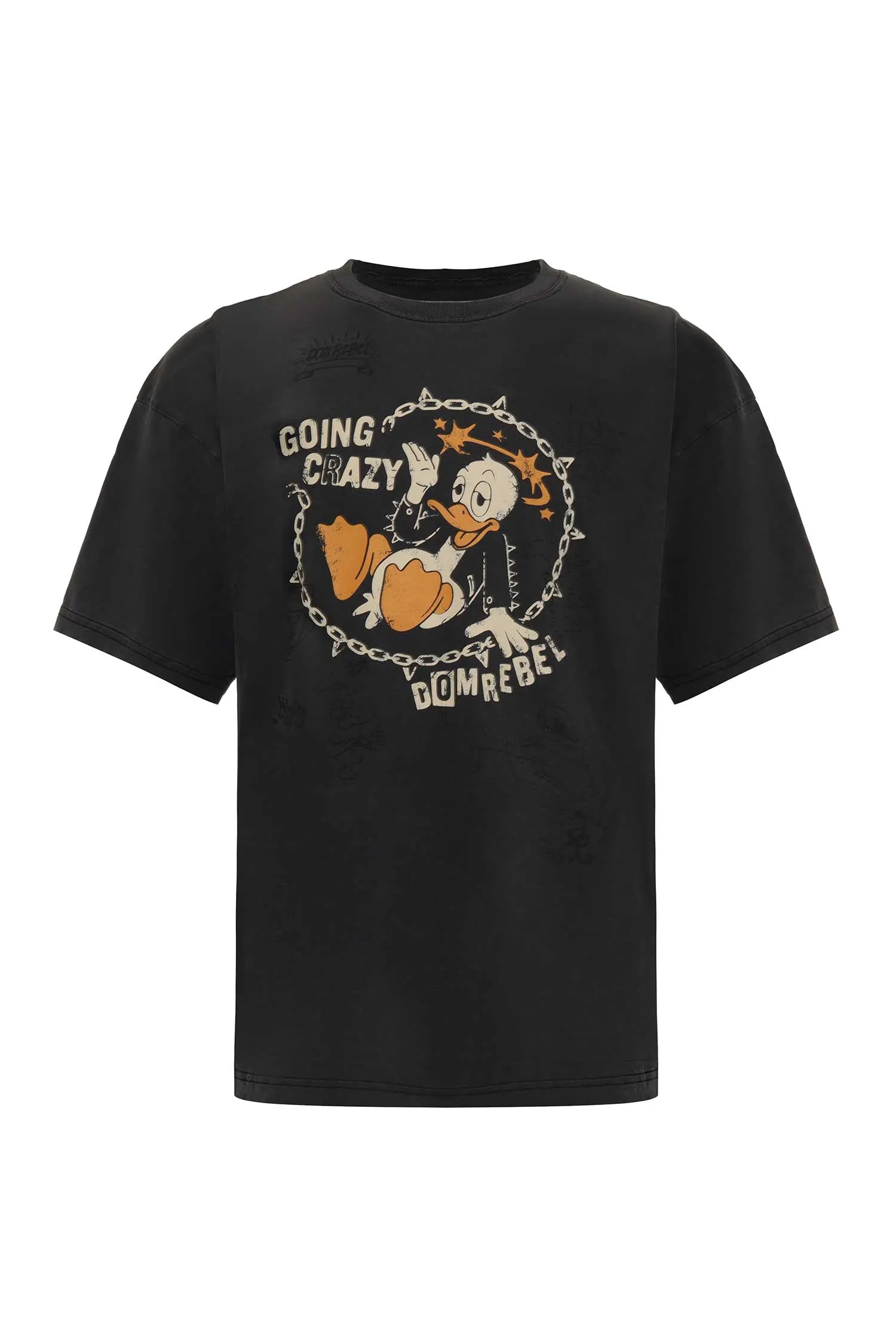 ФУТБОЛКА CRAY Т/СЕРАЯ ВИНТАЖ, НА ГРУДИ РИС.УТЁНОК И ЦЕПЬ