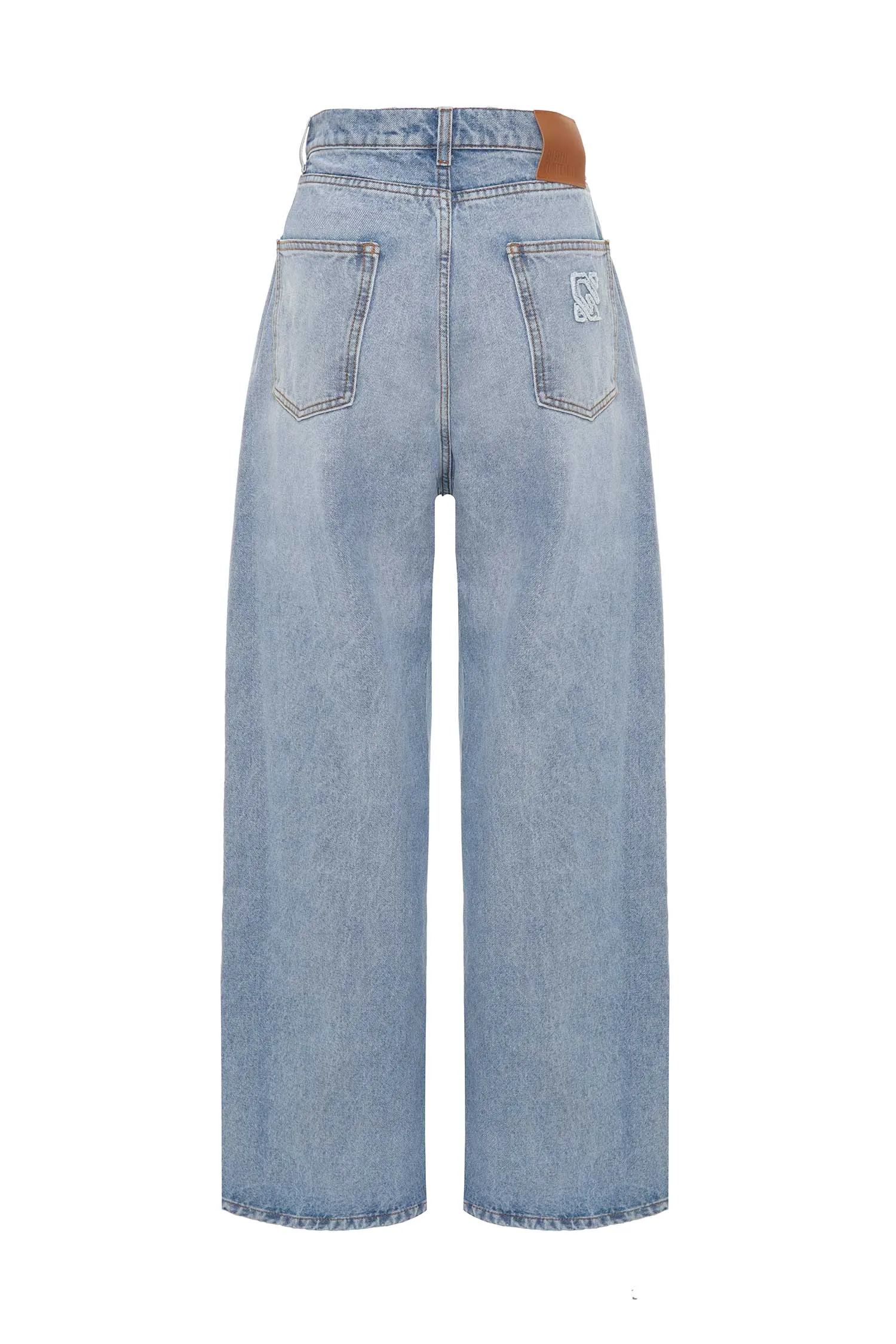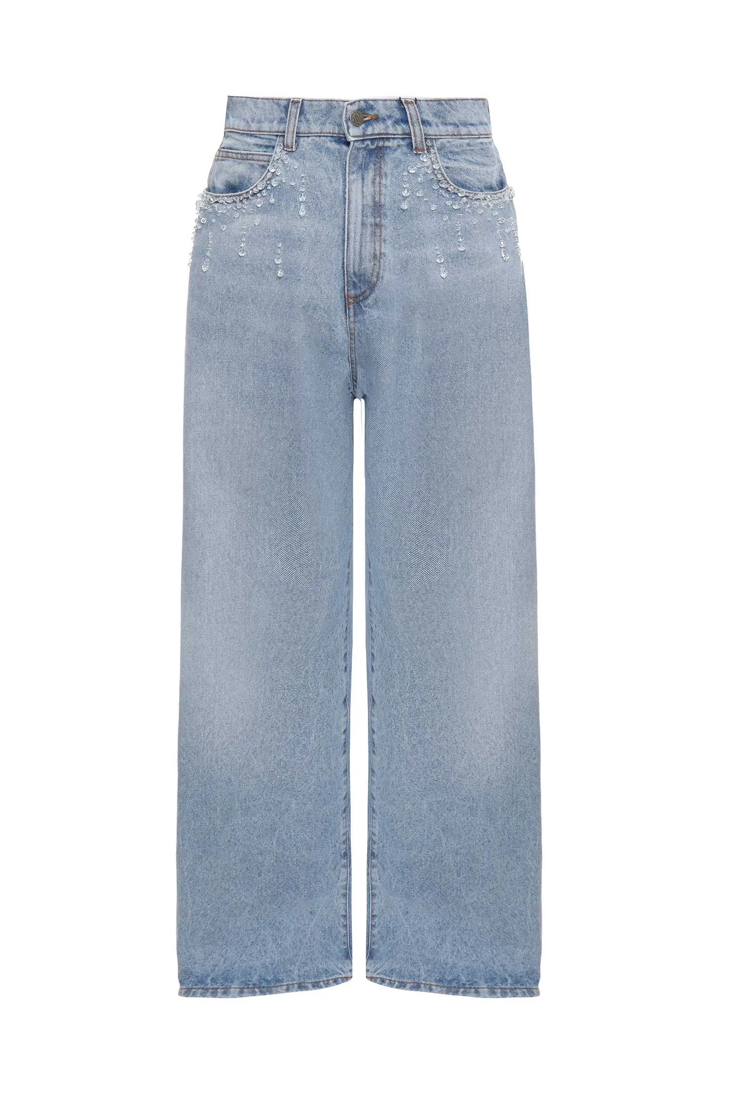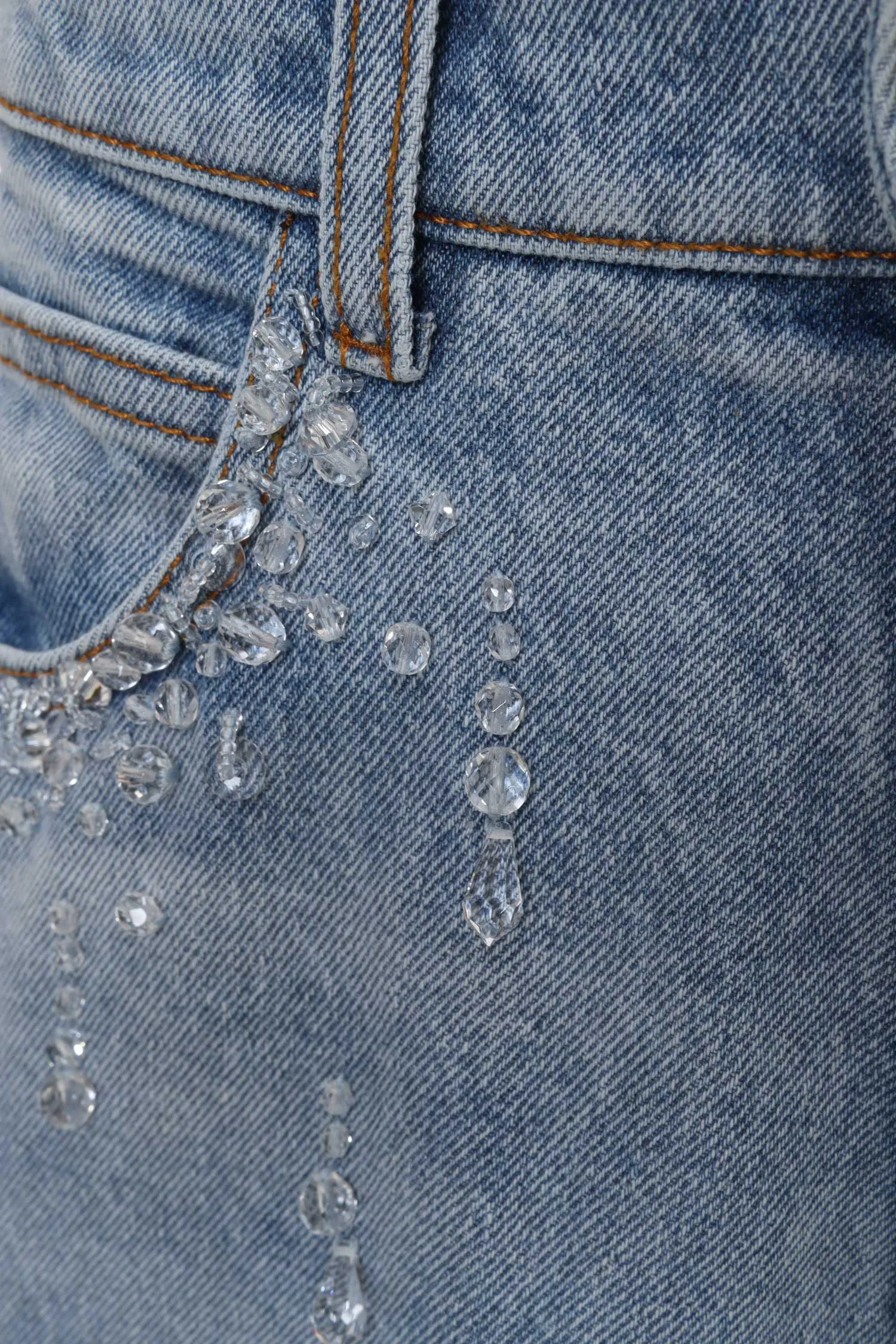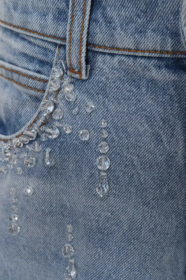 GIUSEPPE DI MORABITO ДЖИНСЫ ГОЛУБЫЕ, СВОБОДНЫЕ, КАРМАНЫ ОТД.ПРОЗРАЧНЫМИ БУСИНАМИ, НА КАРМАНЕ НАШИВКА-ЛОГО, Ш=32