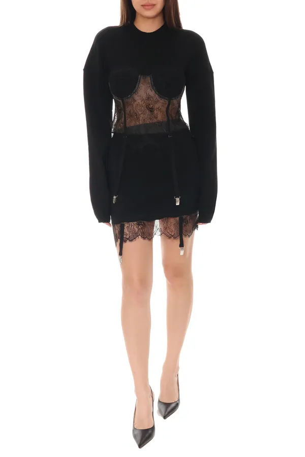 GIUSEPPE DI MORABITO ЮБКА ЧЁРНАЯ, ТРИКОТАЖНАЯ, КОРОТКАЯ, ОТД.КРУЖЕВО, ЛЕНТЫ С СЕРЕБРИСТ.ЗАЖИМАМИ