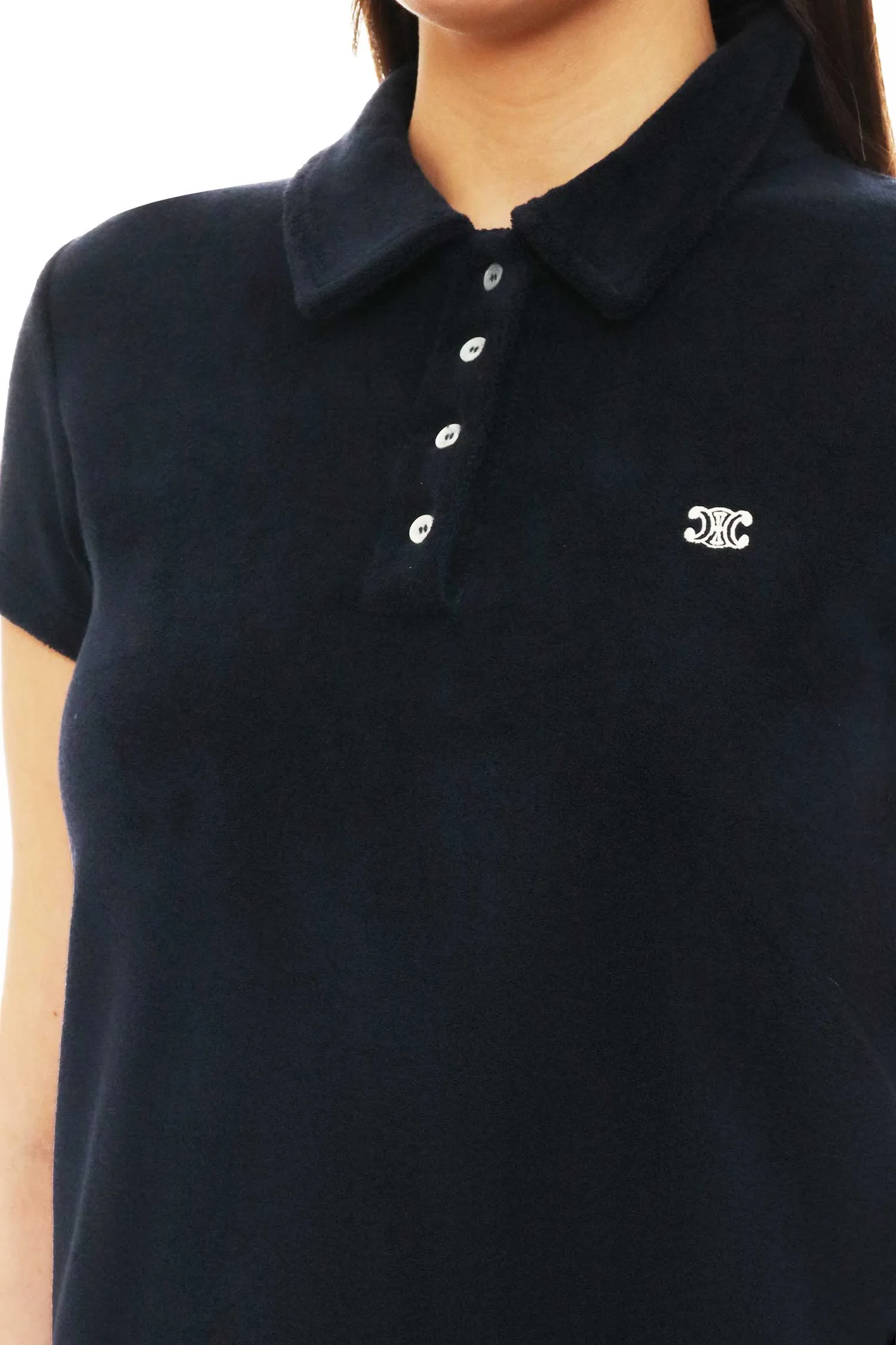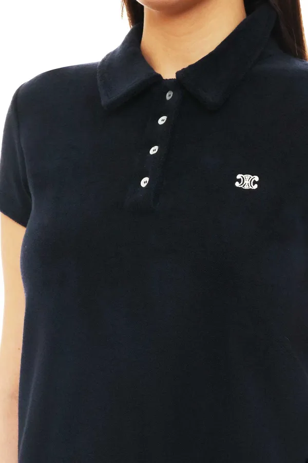 ПЛАТЬЕ-ПОЛО Т/СИНЕЕ, МАХРОВОЕ, КОРОТКОЕ, НА ГРУДИ ВЫШИТОЕ БЕЛОЕ ЛОГО, К/РУК.