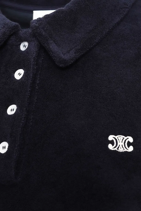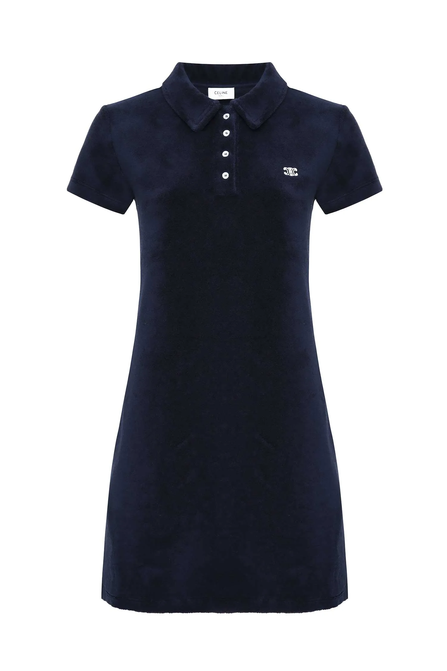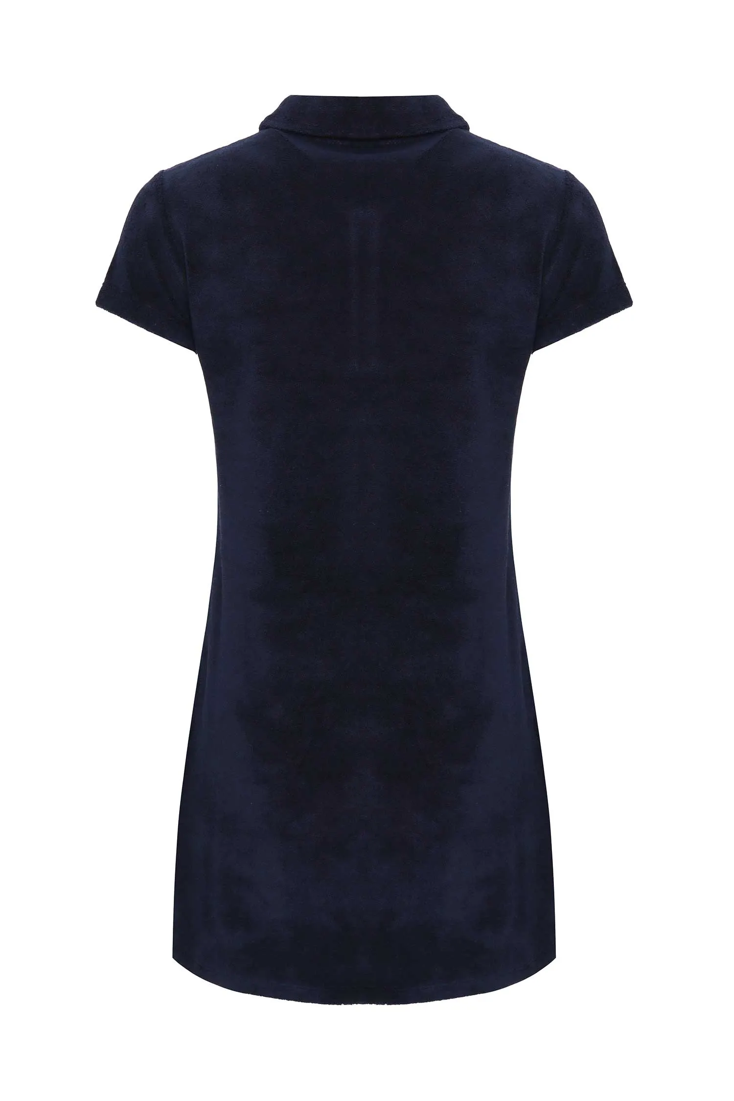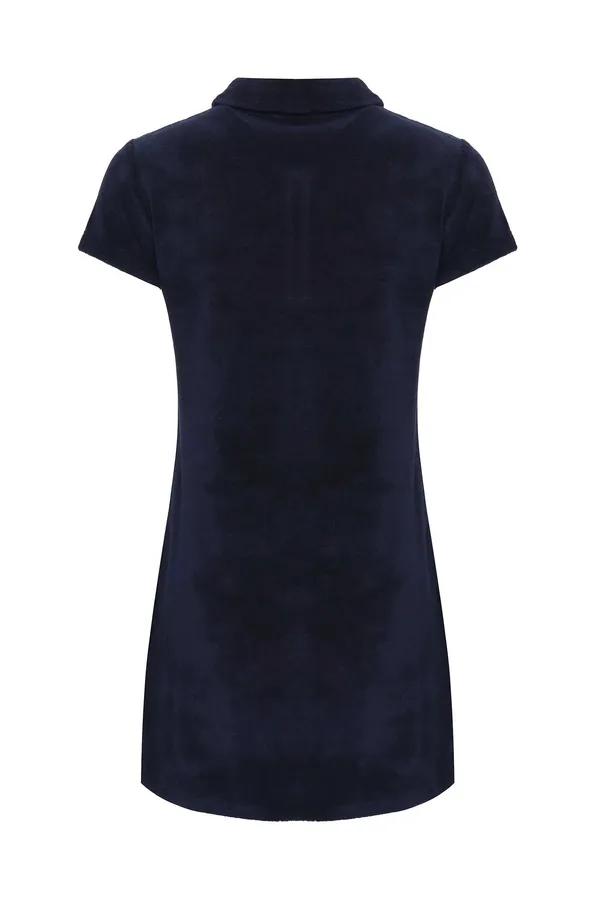 ПЛАТЬЕ-ПОЛО Т/СИНЕЕ, МАХРОВОЕ, КОРОТКОЕ, НА ГРУДИ ВЫШИТОЕ БЕЛОЕ ЛОГО, К/РУК.